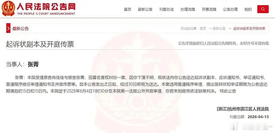 九成美起诉田栩宁六月开庭,但下落不明是啥意思,还有田栩宁刚官宣了猫人代言,这就成被告了