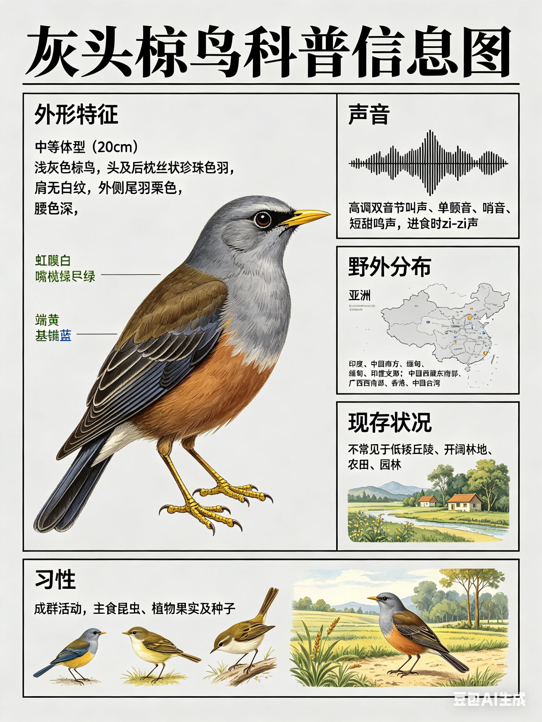 鸟类朋友图鉴 灰头椋鸟