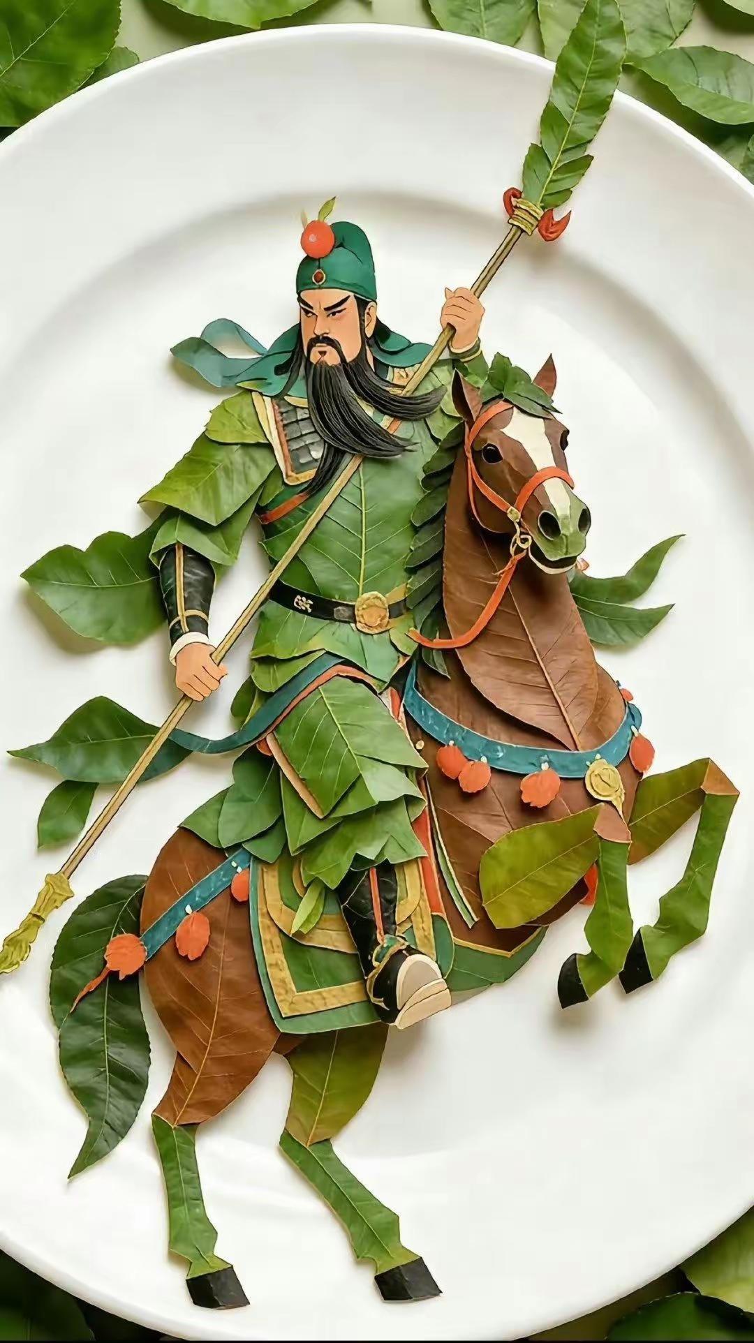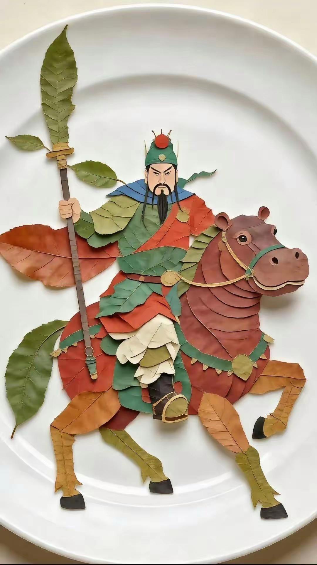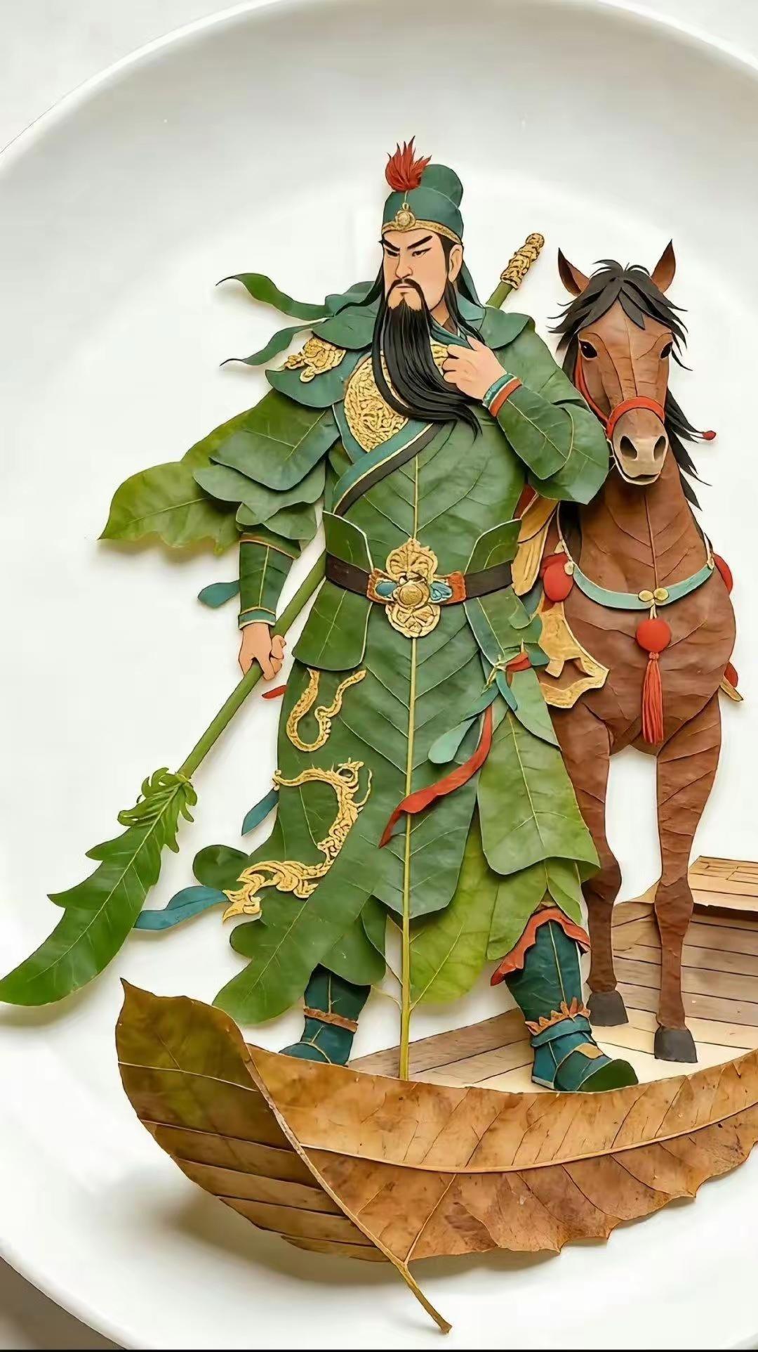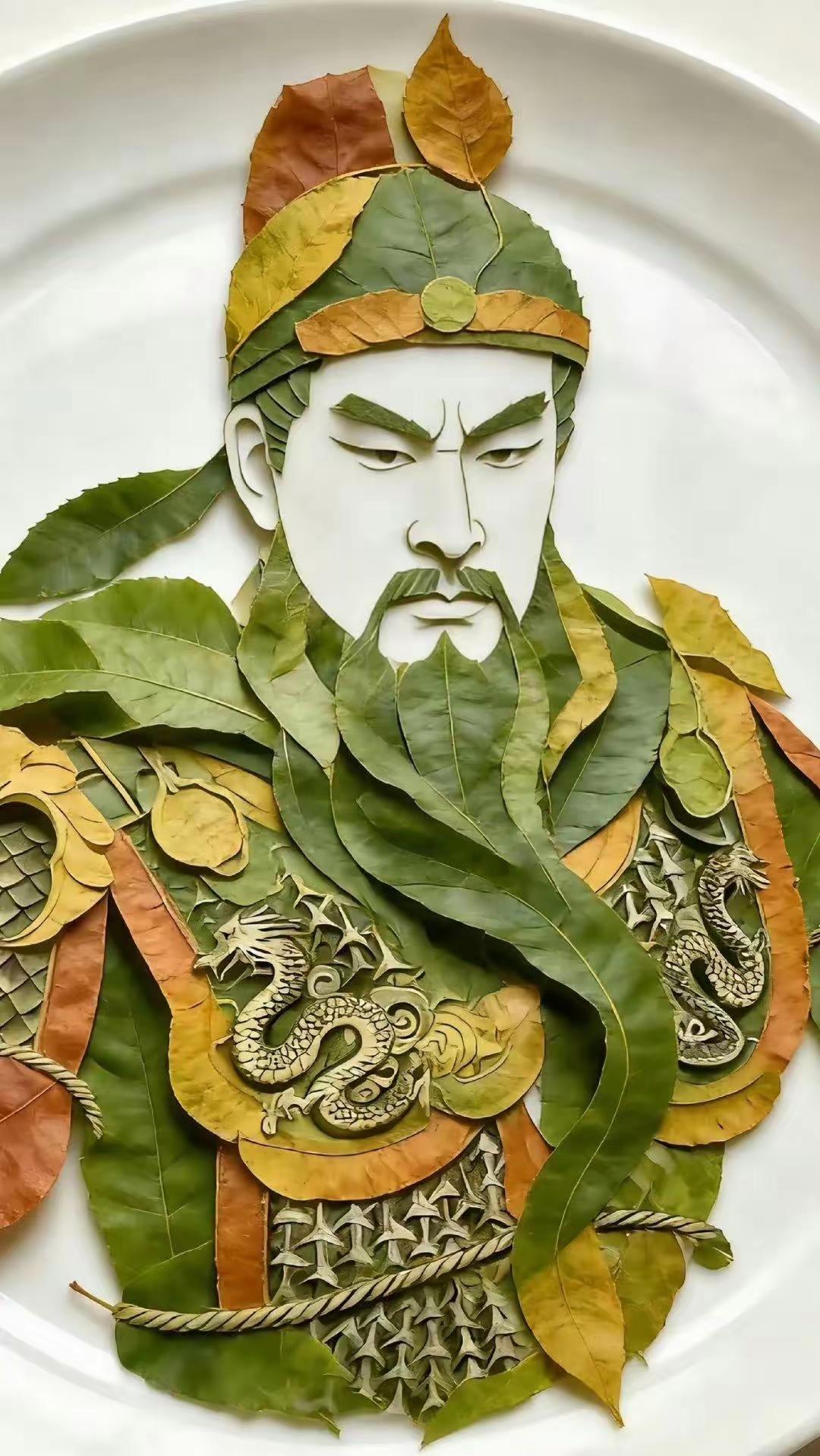 高手在民间,用树叶拼画关公,看到最后一张,恕我忍不住笑了[呲牙][呲牙][呲牙]