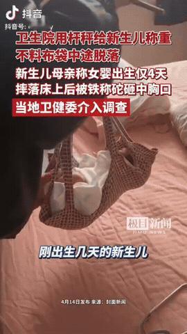 江苏南京,一卫生院上门访视,没想到工作人员竟然用老式杆秤给出生4天的女婴称重,过程中铁秤砣掉落,导致孩子从高处坠落,还不幸被铁秤砣砸到胸口,宝妈担心孩子先后跑了几家医院做了腹部B超,凌晨因发现孩子尿不湿上有血迹,宝妈非常担心孩子的情况。目前当地卫健委介入调查。 信息来源:极目新闻 这事说出来真的让人拳头都硬了。 刚出生4天的孩子啊,软得跟棉花似的,哪经得起这么折腾? 现场视频看过的人都揪心,工作人员用布包着孩子挂在杆秤挂钩上,突然布袋就掉了,孩子直接摔在床上,跟着秤砣也滑下来砸到身上,刚才还在哭的孩子,瞬间就没声了,换哪个家长看了不崩溃? 宝妈现在整个人都快熬垮了,就说工作人员完全是违规操作,这种带秤砣的秤,本来就有安全隐患,怎么敢用来给新生儿称重? 宝爸接受采访的时候也说,当时看到工作人员掏出这杆老秤的时候就觉得不对,心里咯噔一下,可谁能想到更离谱的还在后面,对方连秤都拿不稳,好好的访视愣是变成了惊吓。 现在孩子的情况也让夫妻俩左右为难。 腹部B超已经做了,暂时没看出大问题,医生建议进一步做胸部CT和胸廓三维重建,排查有没有骨折、气胸这些情况,可孩子才出生几天,夫妻俩实在担心辐射对孩子有影响,现在还在犹豫。 之前尿不湿上出现的3次红色分泌物,医生说也不排除是新生儿假性月经,还得接着复查观察,夫妻俩现在天天盯着孩子的情况,眼睛都不敢多闭一会儿。 后来再仔细看当时的情况,觉得秤砣应该是砸到了孩子腋下的位置,不是胸口正中,也算稍微松了半口气,但悬着的心根本放不下来。 这事一出来,网上直接炸了锅。 好多网友都懵了,这都2026年了,怎么还有卫生院用这种老杆秤给新生儿称重? 是连个百八十块的电子秤都买不起吗? 还有人说,新生儿上门访视本来是好事,怎么就办成了糟心事,早知道是这种操作,还不如不让他们上门。 说真的,大家的质疑真不是挑刺。 我特意去查了国家卫健委的规定,正常足月的新生儿,出院之后7天内要做首次访视,满月还要再访一次,本来是为了监测孩子的健康情况,是好事。 但称重的要求也写得明明白白,要么用杠杆式体重秤,要么用电子体重秤,孩子得躺着称,不能接触其他物体。 你用杆秤把孩子挂起来称,这操作从根上就不符合规定,完全是违规。 而且老杆秤用久了本来就容易滑砣,稍微有点疏忽就容易出问题,工作人员要么是太不当回事,要么就是操作太粗心,出这种事真的是完全不应该,说句错上加错一点都不过分。 现在当地已经开始处理这事了。 涉事的江浦街道社区卫生服务中心说已经接到了家长的反映,现在高度重视,正在和家长积极对接,还请了上级专家来会诊,尽全力保障孩子的健康,当时操作的医护人员已经被停职了。 至于为什么用这种杆秤,对方说这是访视包里统一配的,全国好多地方都在用,之前从来没出过事,还说后续应该不会再用这种带秤砣的秤了。 浦口区卫健委也已经介入调查,不过关于用杆秤合不合规的问题,暂时还没有正面回应,后续结果还得等官方通报。 宝爸后来也说,自己现在也挺自责的,当时看到秤不对劲的时候,没能拦着,自己也有责任,现在就想着先好好观察孩子的情况。 如果之后真的需要做CT,医生也说必须做的话,他们也不会回避,现在暂时不想接受太多采访,一切情况都以自己发的内容和官方通报为准。 其实这事走到这一步,大家最关心的除了孩子的健康,就是责任怎么算。 按照民法典的规定,患者在诊疗活动里受到损害,医疗机构或者医护人员有过错的,就得由医疗机构承担赔偿责任,这一点是没跑的。 孩子的检查费、医药费,还有后续要是有什么问题需要治疗的费用,都该由涉事卫生院承担。 要是最后认定成医疗事故,处罚还会更重。 卫生院这边轻则被警告,情节严重的可能要停业整顿,甚至吊销执业许可证。 负责操作的医护人员,要是够不上刑事处罚,也会有行政处分,还可能被暂停6个月到1年的执业活动,情节严重的直接吊销执业证书,要是真给孩子造成了不可逆的伤害,该负的刑事责任也跑不了。 说白了,该赔的得赔,该罚的得罚,总得给孩子和家长一个交代。 其实新生儿访视本来是便民的好事,可就是这么一个看似简单的称重环节,因为不按规范来,差点酿成大祸,真的值得所有基层医疗机构警醒。 这样的医护人员实在太没责任心了,而且还使用老式秤砣,这完全是拿孩子安全开玩笑,应该得到严惩,作为医护人员一定要有安全意识,不是带来“威胁”,一定要吊销执业证书,因为一个小错误可能害了孩子的一生,这责任是谁都承担不起的。