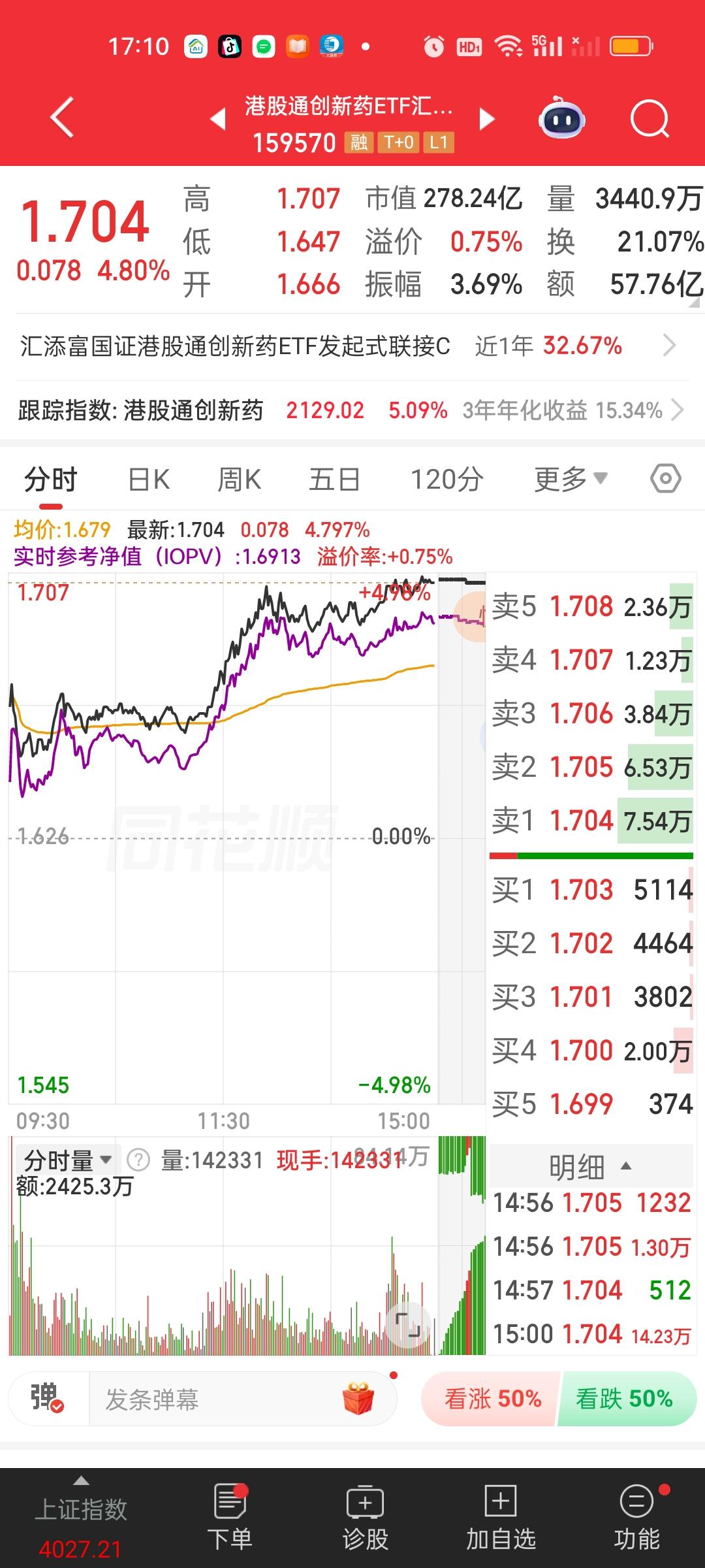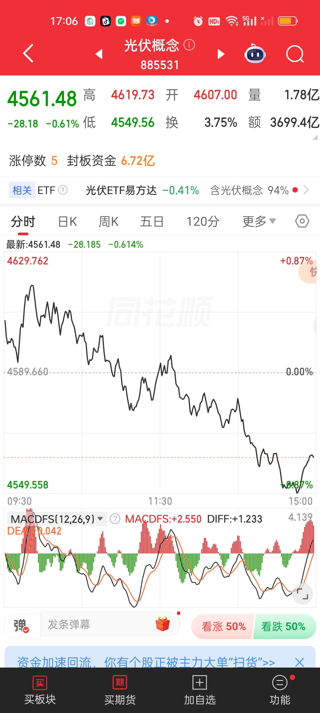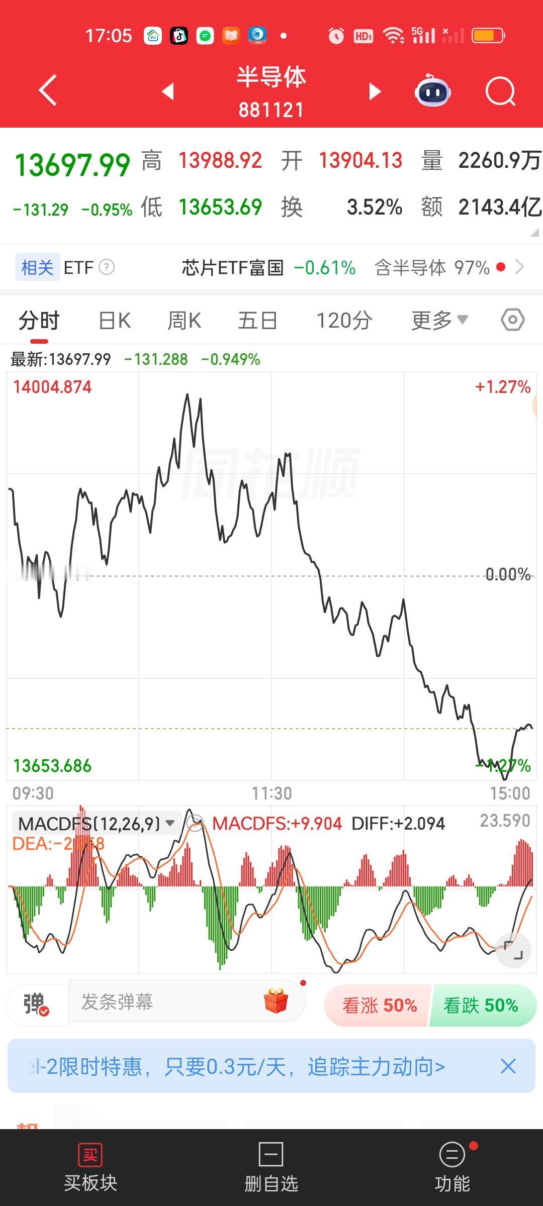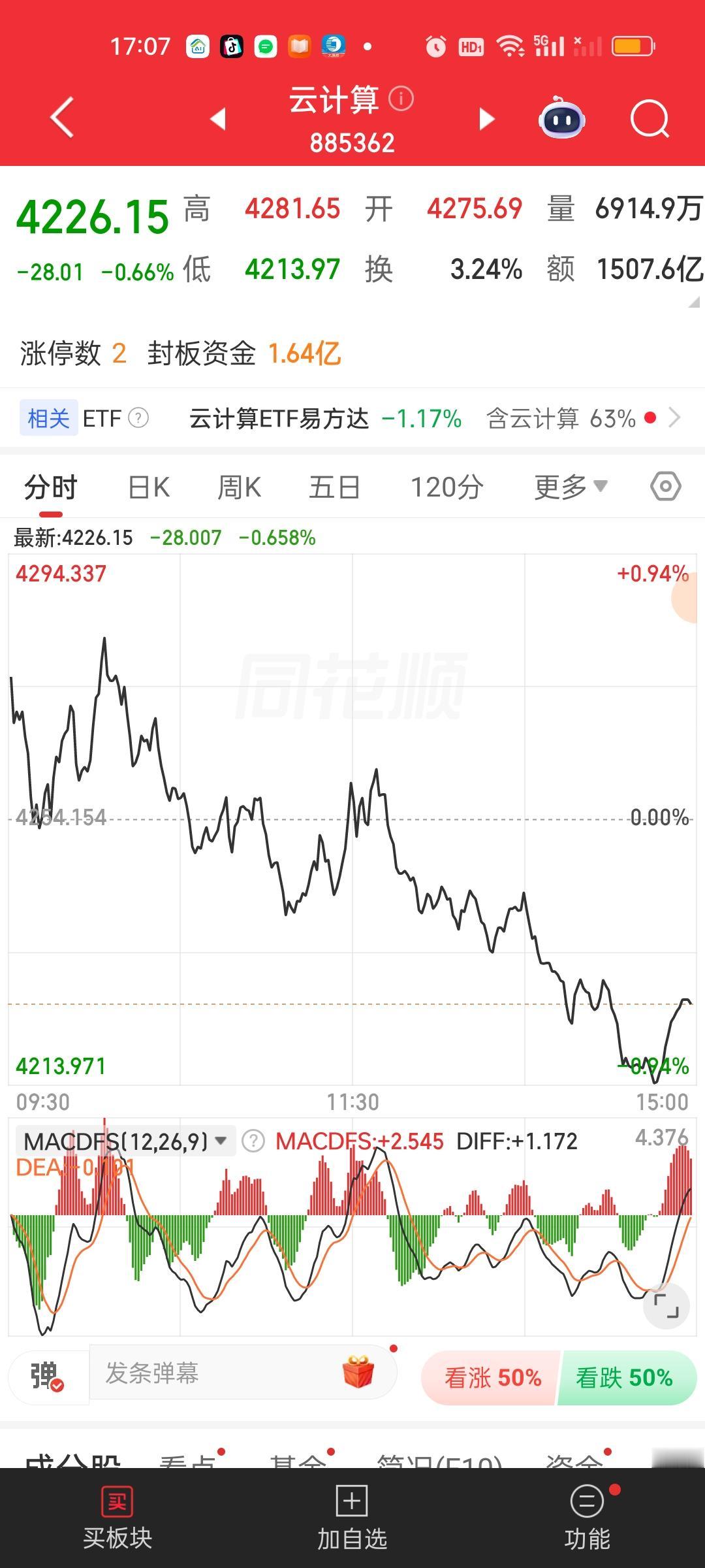 今天拿着最舒服的板块肯定是创新药,或者说医药,今天涨幅那是相当可以的。几乎所有的科技板块都是这样的走势,连形态都一样,上午拉高下午下杀,尽管实际跌幅没有图片上看的那么大。跌幅基本都在1%以内,但最直观的结果是上午还是盈利的,下午变成亏损了。但因为实际跌幅并不大,所以也能接受。