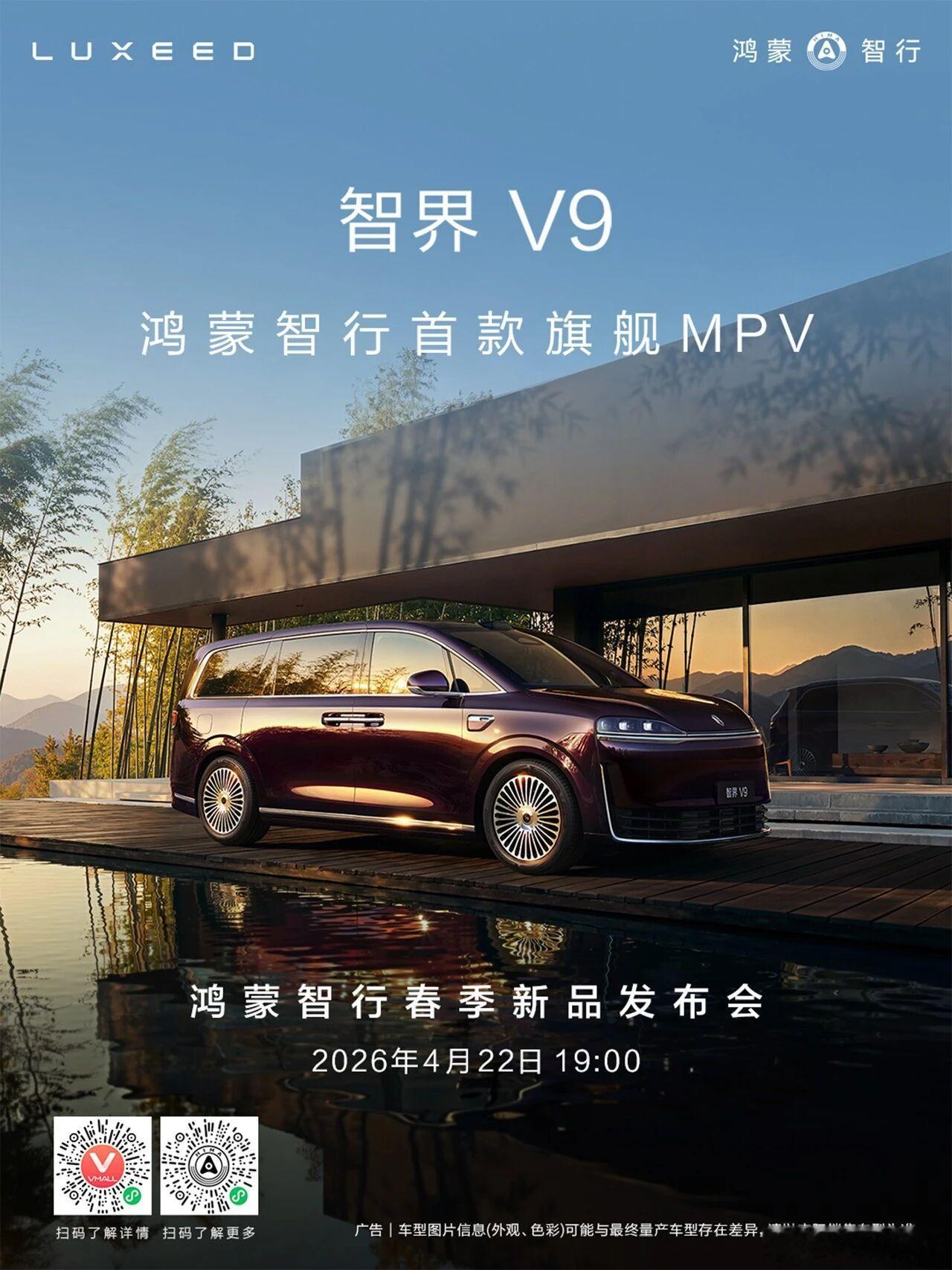鸿蒙智行春季新品发布会定于4月22日19:00举办。问界M6、尚界Z7/Z7T正式上市,M6标配896线激光雷达与华为途灵平台;智界V9、全新一代问界M9同步开启预订,多款车型覆盖SUV、MPV、轿跑领域,以硬核科技亮相。尚界Z7尚界Z7T智界V9问界M9问界M6新能源汽车