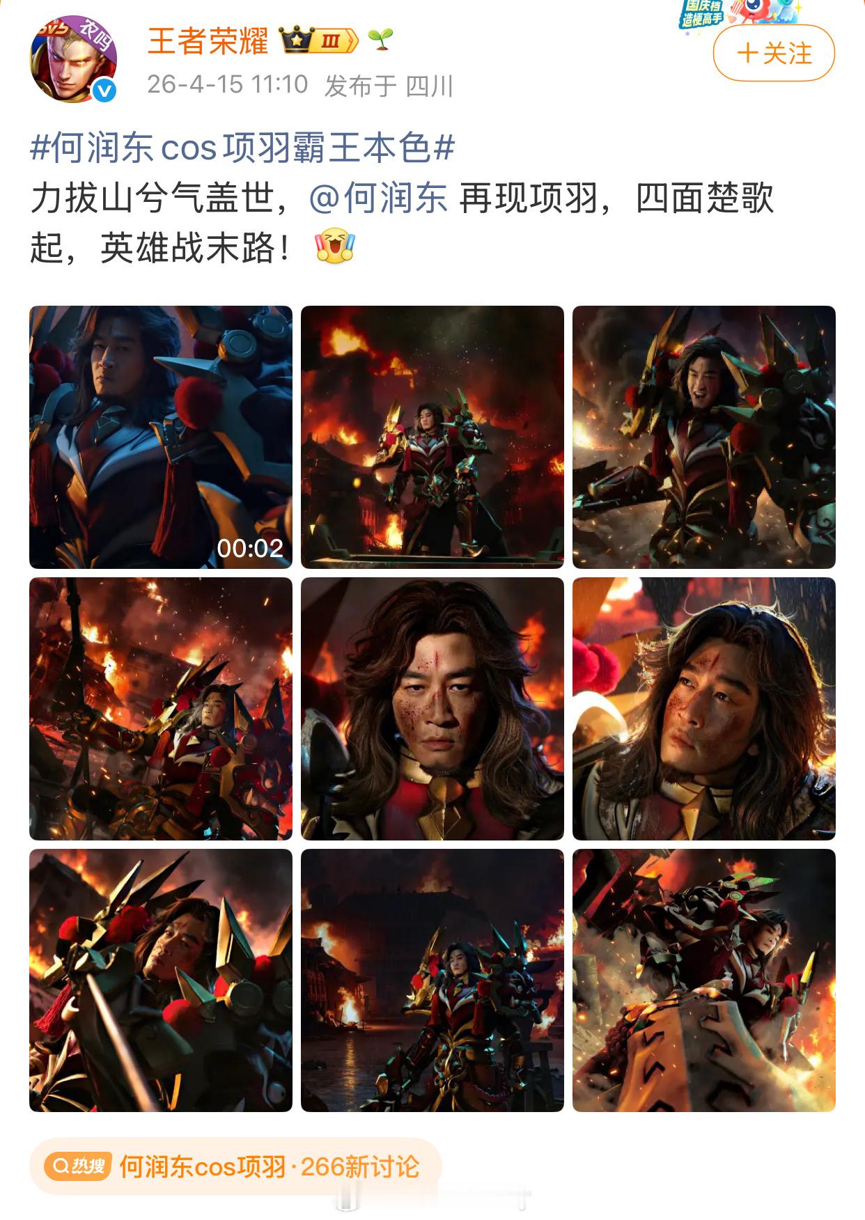 何润东就这样翻红了,王者荣耀商务也接到了 何润东cos项羽