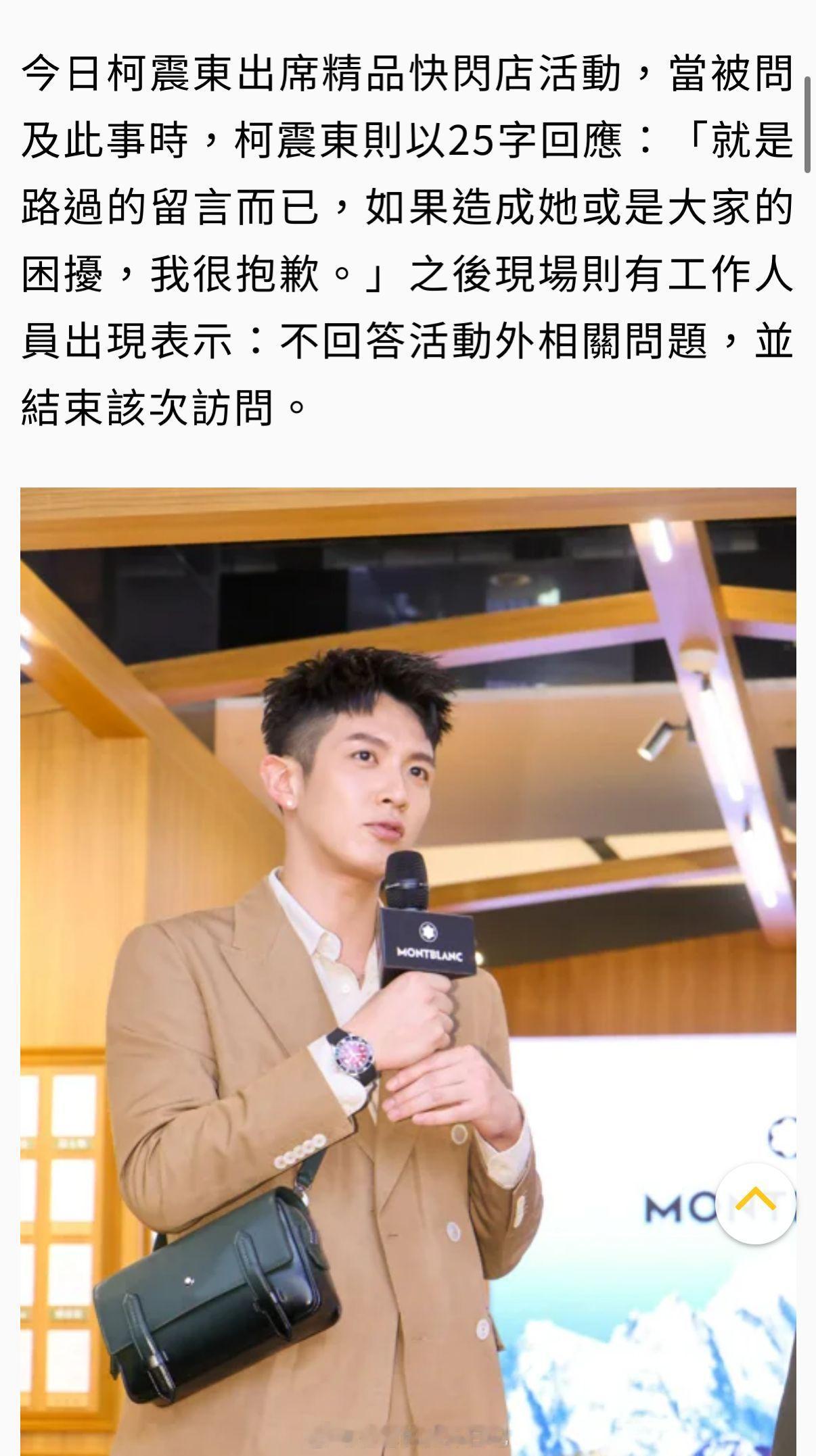 柯震东回应:我只是路过留言,没想到造成了她和大家的困扰。