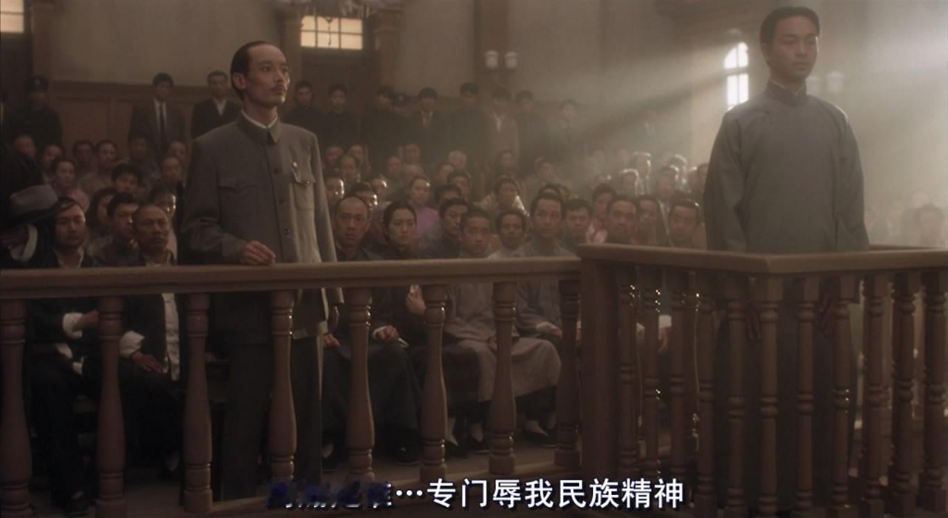 当口无遮拦的段小楼一句“日本兵看戏都不曾这样大闹”,国民党士兵立刻冲上戏台教育这个“给鬼子叫好”的戏子,混乱中把菊仙肚子里的孩子碰没了。当庭上法官问程蝶衣给日本人常淫词艳曲是否属实时,袁世卿用“国粹”进行回击,表示你说我们蝶衣反华,我说你比人家更反华,更该死,顿时引起台下一片喝彩。