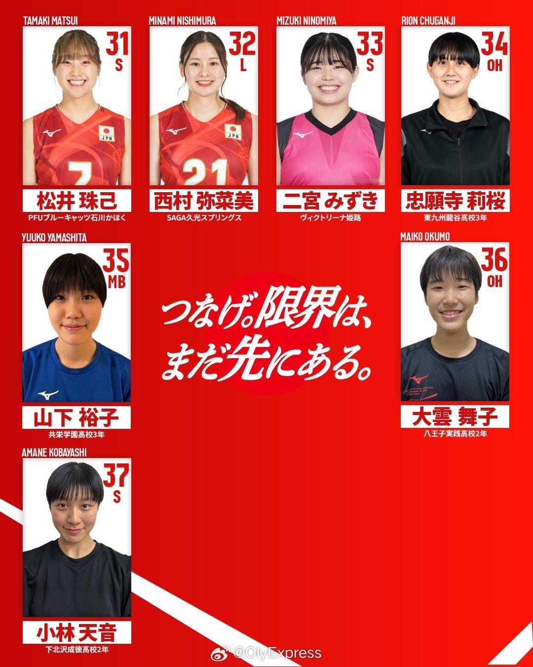 【日本女排37人大名单】国际排坛动态 4月15日,日本女排主教练阿克巴斯公布了国家队37人大名单,其中14人为首次入选,今年国家联赛和亚运会的球员将从中选出。名单如下:二传:6-关菜菜巳、7-荣绘里香、10-中川つかさ、14-塩出仁美、24-花冈千聪、31-松井珠己、33-二宫みずき、37-小林天音边攻:1-和田由纪子、4-石川真佑、5-佐藤淑乃、16-鴫原ひなた、17-川添美优、18-宫部爱芽世、21-广田あい、22-北窓绚音、25-大森关爱、26-秋本美空、28-佐藤彩夏、30-志摩美古都、34-忠愿寺莉樱、36-大云舞子副攻:2-荒木彩花、3-岛村春世、11-山田二千华、13-山口真季、15-宫部蓝梨、20-本田凛、23-井上未维奈、27-马场柚希、29-甲萌香、35-山下裕子自由人:8-小岛满菜美、9-岩泽实育、12-福留慧美、19-西崎爱菜、32-西村弥菜美
