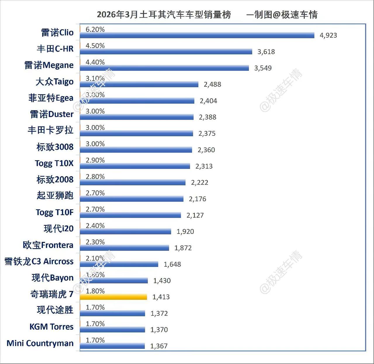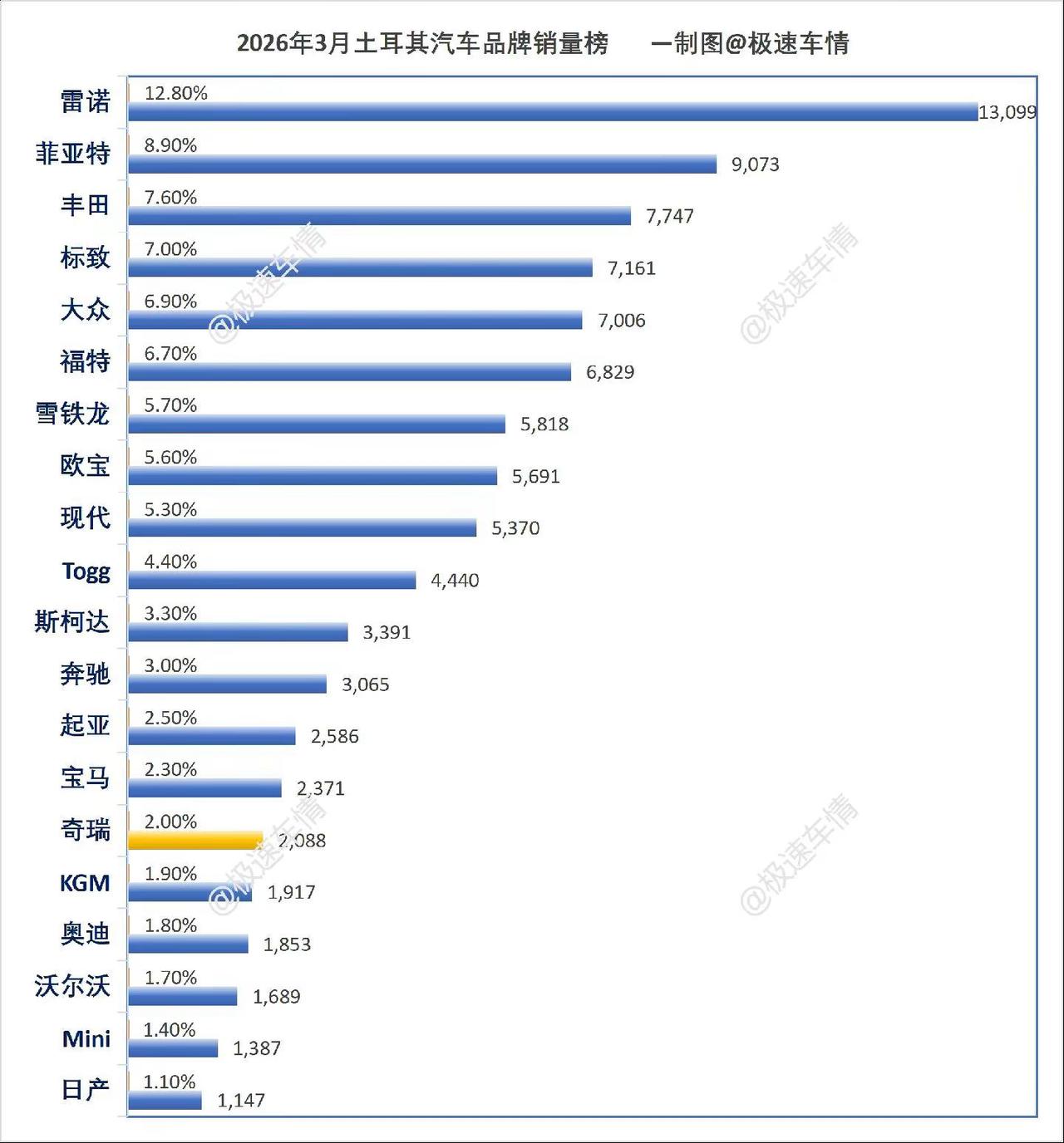 土耳其2026年3月汽车销量排行榜!土耳其3月,奇瑞Omoda&Jaecoo大涨44.5%;比亚迪大跌71%、奇瑞大跌28%! 土鸡政府在比亚迪建厂问题上提出各种技术转让条件,现在建厂已经告吹。我们的车都是高额关税在卖!极速车情 土耳其 国中土耳其 狗中哈士奇