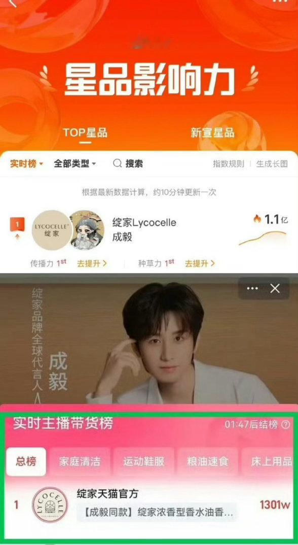 成毅绽家星品破亿热度登顶第一,销量登顶,“双顶流”❗总监的脸都笑开花了哈哈哈哈哈