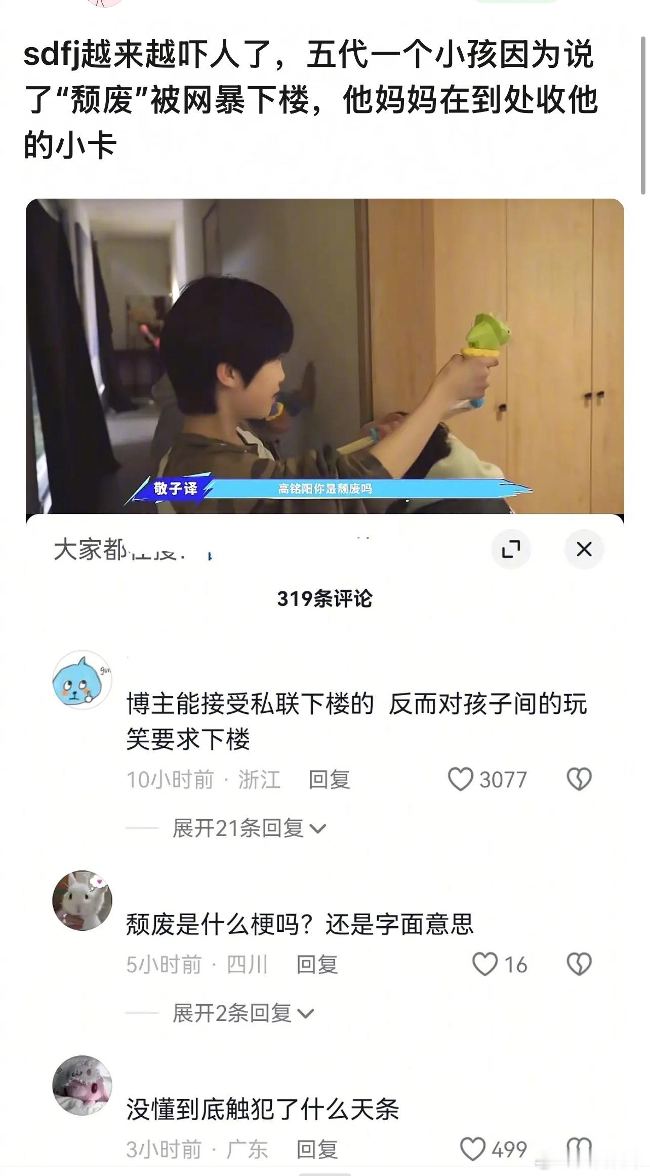 sdfj五代一个小孩因为说了“颓废”被网暴下楼