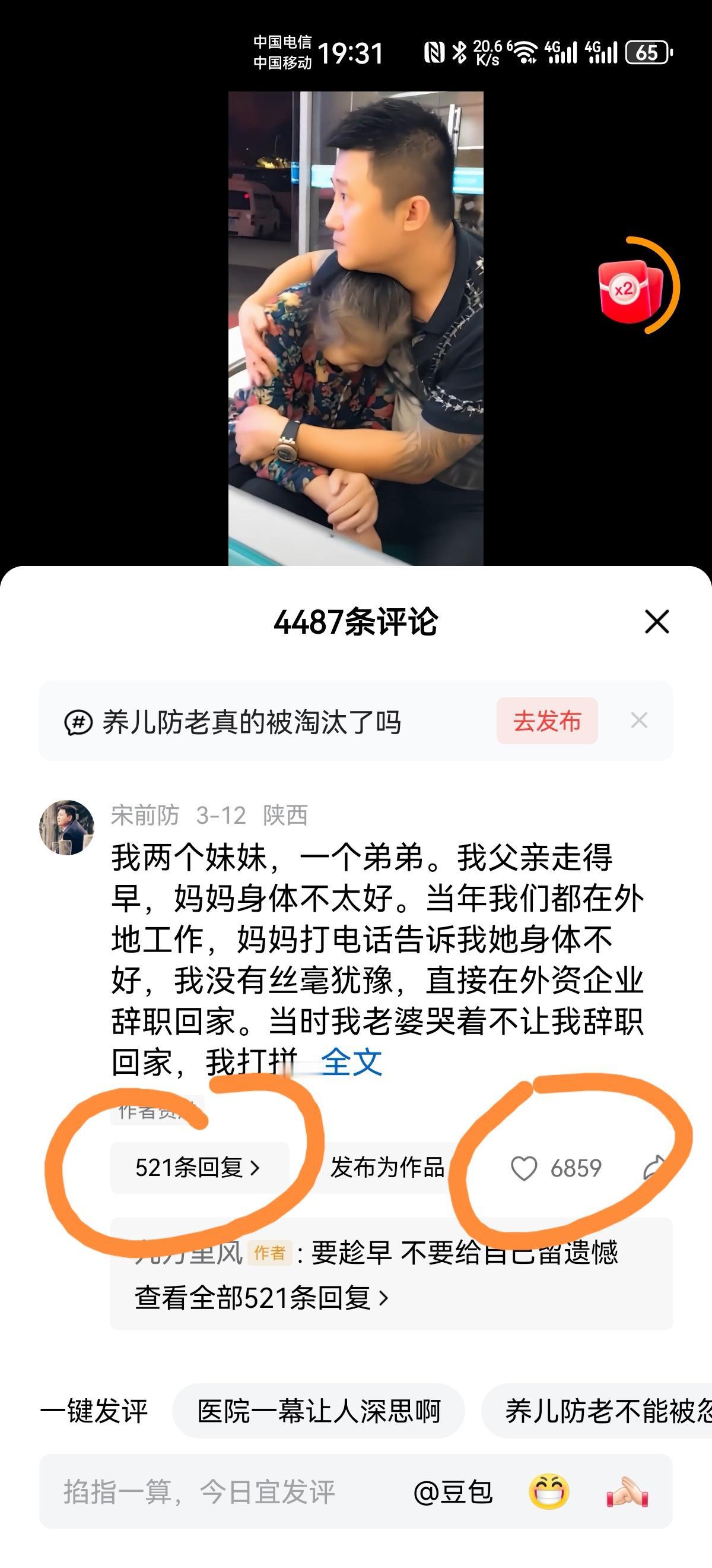 用心评论,能得到友友的认可,确实很感动! 看到医院子女们照顾父母的视频,就写了段评论,没想到,点赞量6859,连对于我评论内容的评论都521条了。