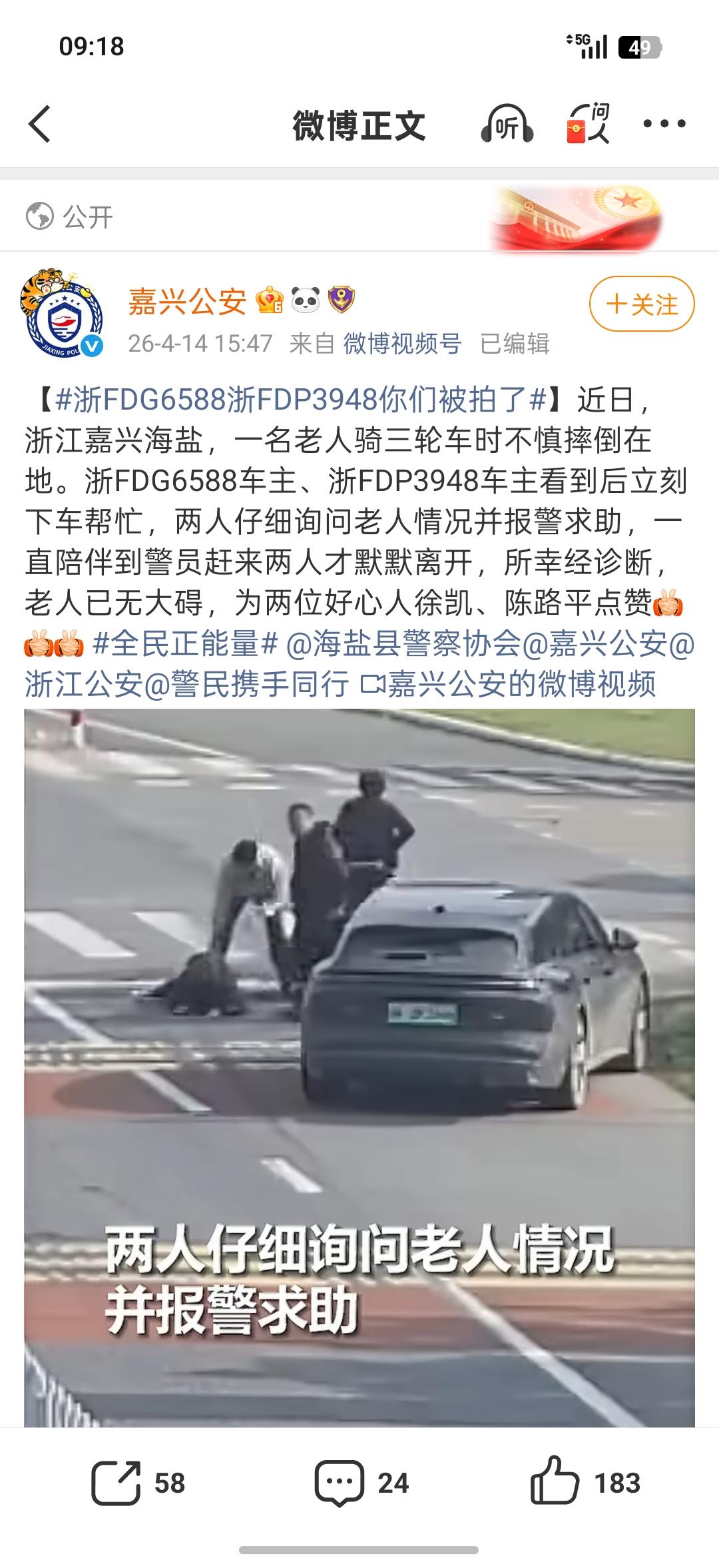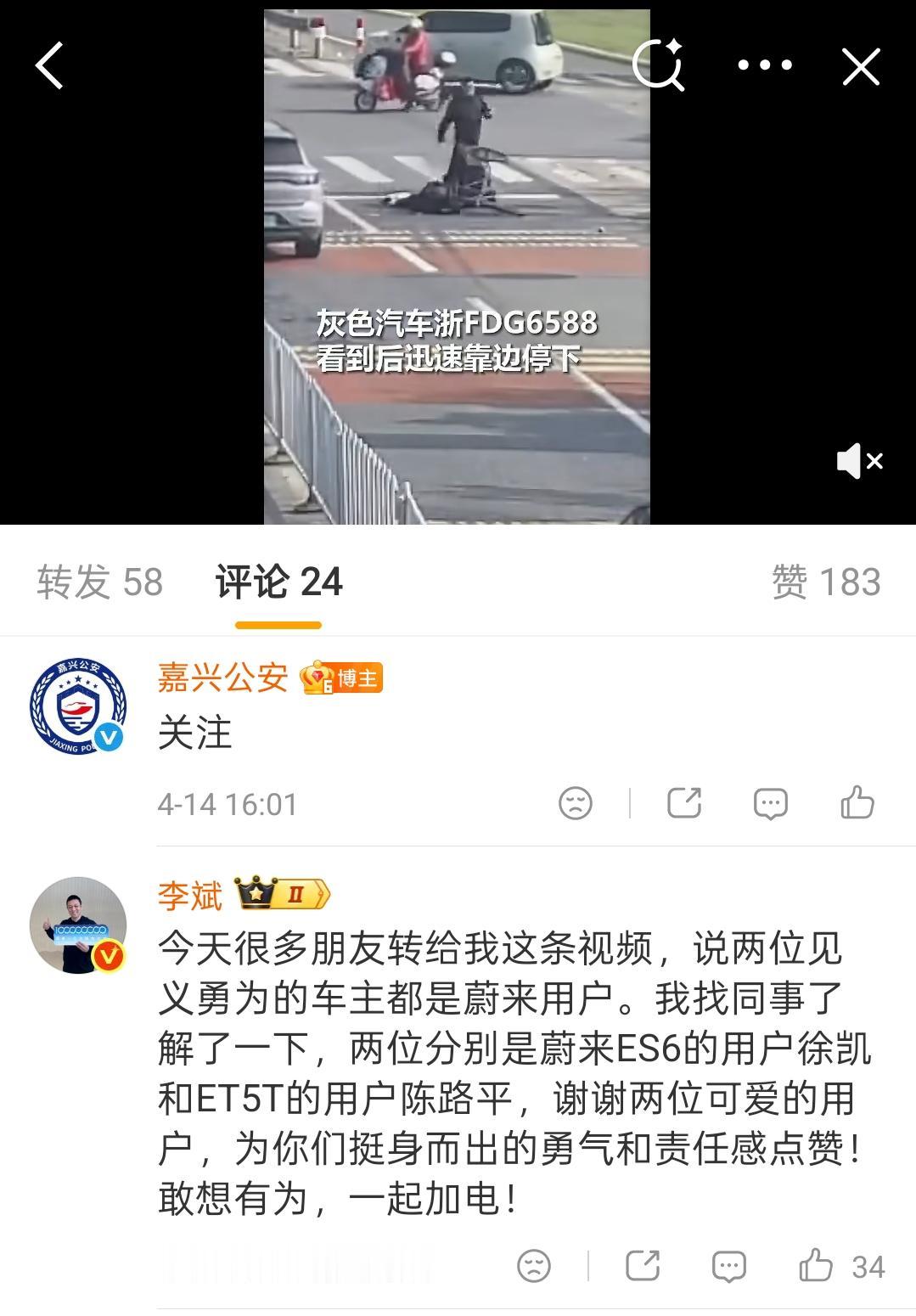 这两位蔚来车主,好样的!像你们学习! 昨天这事儿在车友群里传开了 一位EC6车主和ET5T车主,在路上遇见一位老人摔倒,并及时冷静的进行帮助!看到之后内心真自豪啊,如果我遇到这种事情,我也会做出同样的选择。斌哥也关注到了此事。 这两位车主,一个看照片,我应该叫声大哥,一个看岁数是一位年轻小哥,名字我也不打码了,你们应该被认识!像你们学习车主 蔚来
