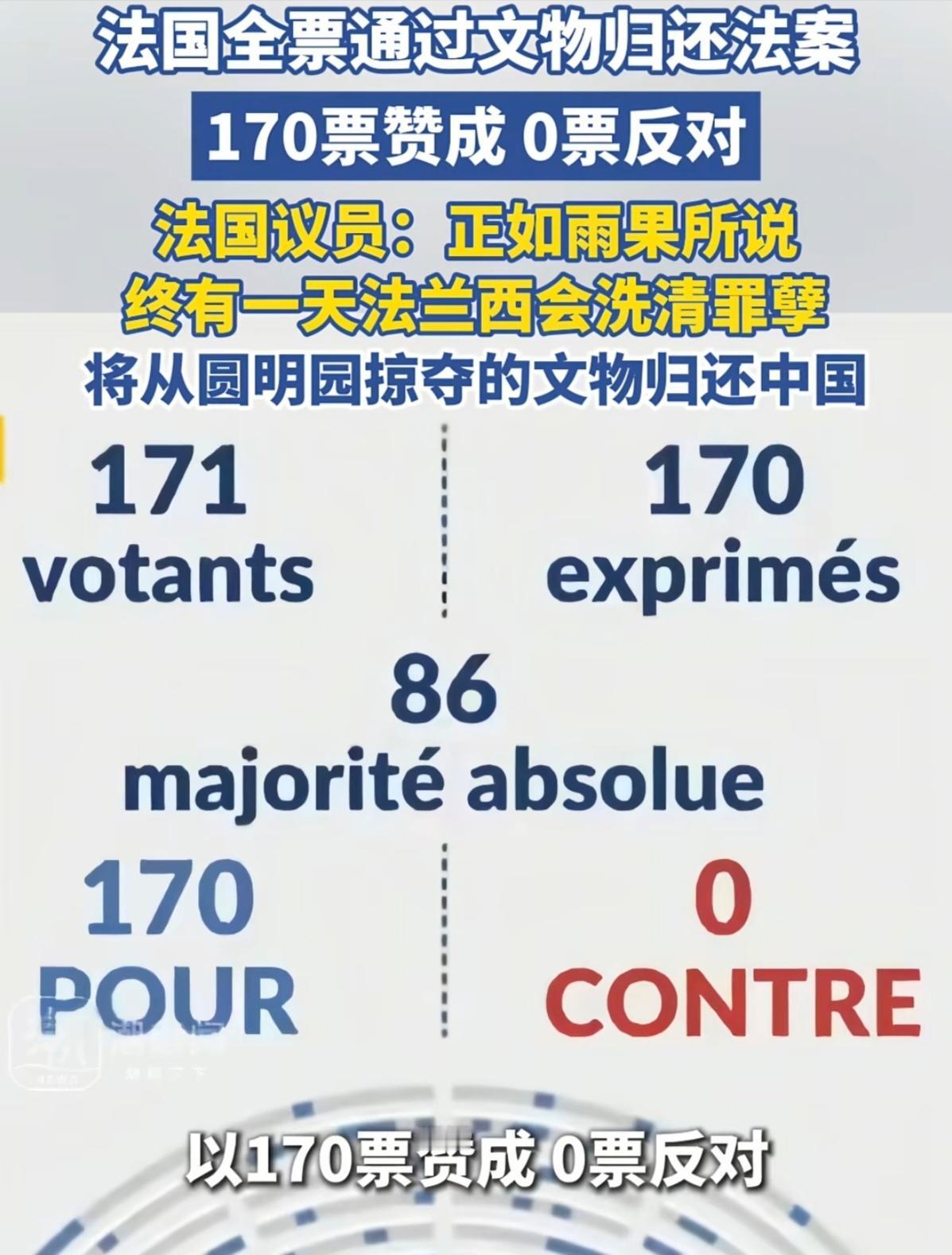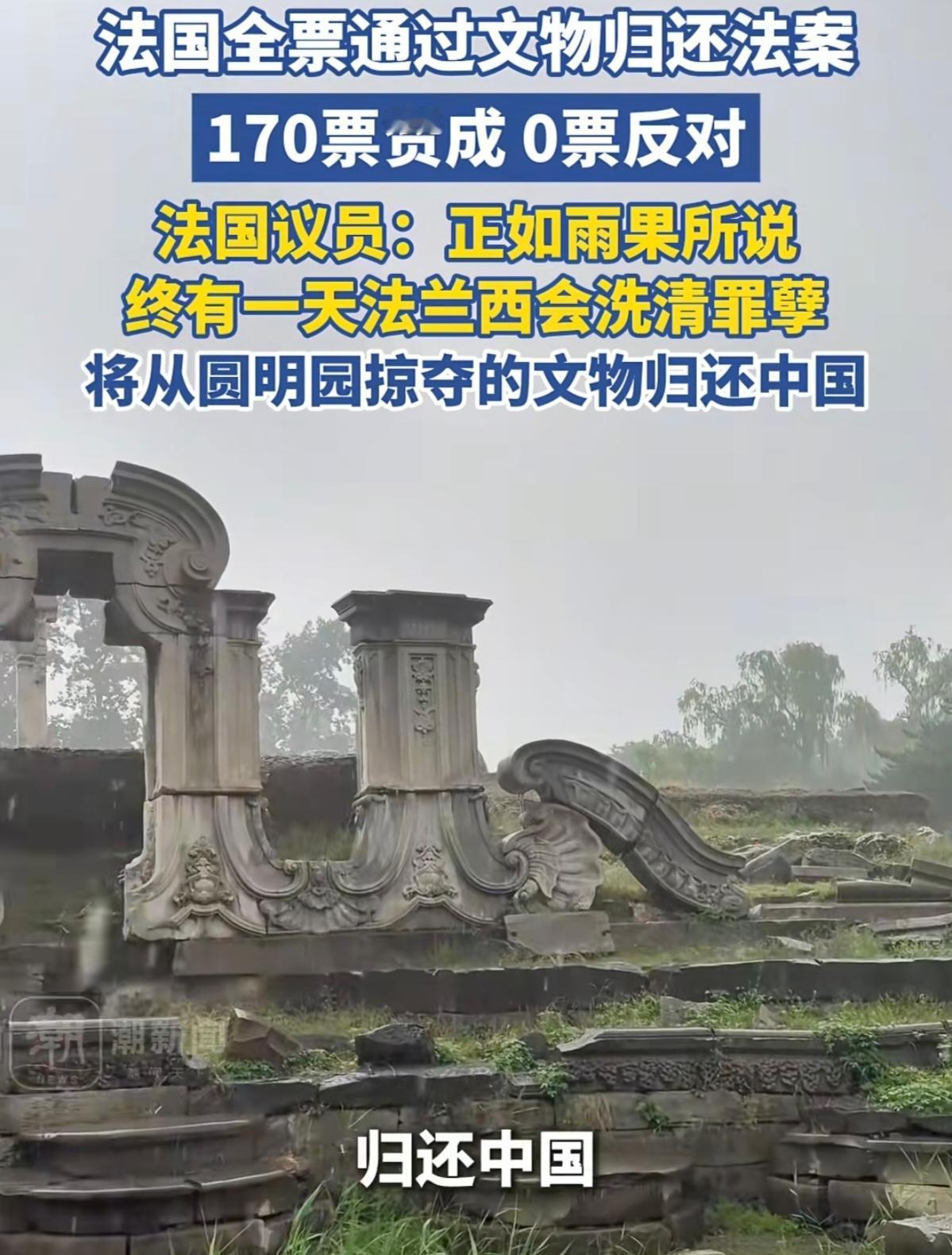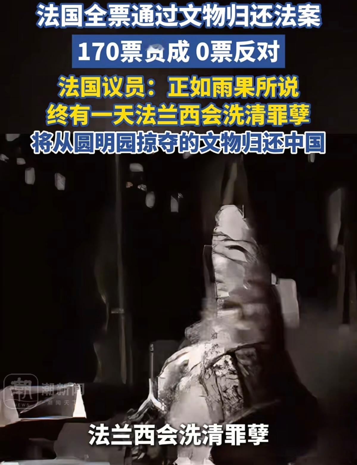 法国突然干了件大新闻!议会全票通过法案,要把殖民时期抢来的文物还给原主。议员还搬出雨果的话,说什么“干净的法兰西会把战利品归还中国”。这事儿听着新鲜,但仔细一琢磨,怎么觉得哪儿不对劲? 想当年,法国跟着英国在圆明园烧杀抢掠,把咱宝贝抢个精光。雨果那时候就骂法国是强盗,说这事儿“丢人丢到全世界”。现在倒好,一百多年过去了,法国突然要当“好人”了?这转变也太快了吧! 看看这法案,说是“简化归还程序”,听着挺漂亮。但仔细一看,全是模糊话。哪些文物能还?怎么还?什么时候还?统统没写清楚。这不就是画大饼吗?网友们都看明白了,说这是“政治作秀”,就是为了哄原住民开心,顺便给自己脸上贴金。 法国现在为啥突然良心发现了?说白了,还是为了利益。现在全世界都在反殖民,法国再当“铁公鸡”就太招人恨了。还几个文物,花小钱买个大名声,这笔买卖划算得很。再说了,真金白银的赔偿可一个字没提,这哪是认错,分明是精明的算计! 这事儿结局会咋样?我估摸着,雷声大,雨点小。嘴上说得好听,真要动真格的,法国指不定找多少借口。那些文物在法国博物馆躺了这么多年,早就成了他们的“私产”。想让法国真痛痛快快地还东西,难! 说到底,强盗变君子?还是另有算计?这事儿咱们得擦亮眼瞧着。那些被抢走的文物,那是咱们的根!不是法国施舍的,是他们该还的!