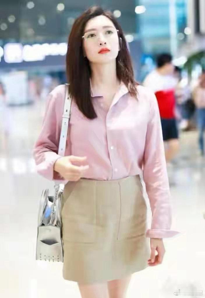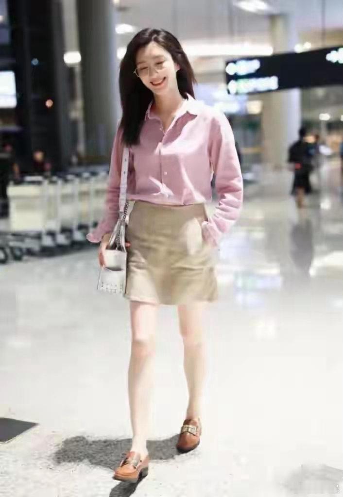 江疏影私服审美在线!粉色衬衫搭配卡其半身裙,穿搭简约大气,温柔配色兼具高级感,清爽耐看满满减龄气质