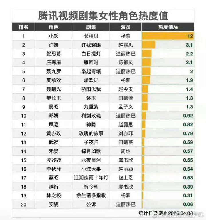 也是看不懂了,🐧女性角色热度top1到底是杨紫还是迪丽热巴?角色热度是改版了吗?看到有人说以前主要靠发帖讨论,现在主要靠氪💰?迪丽热巴谈性格敏感杨紫官方后援会致歉