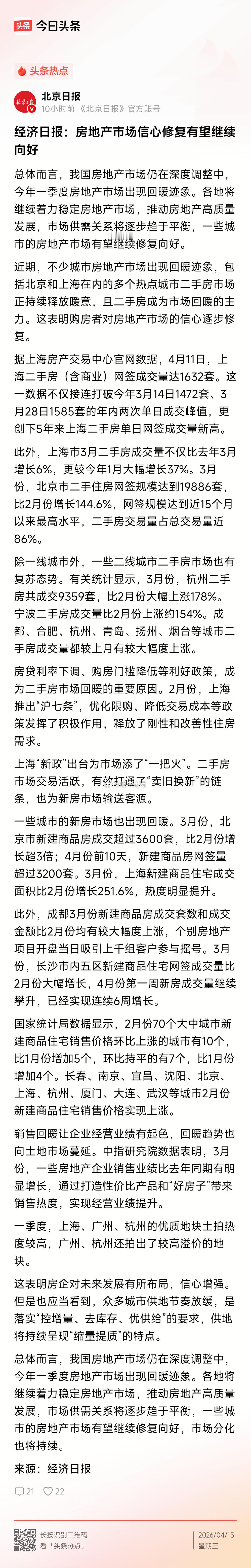 经济日报:房地产市场信心修复有望继续向好~