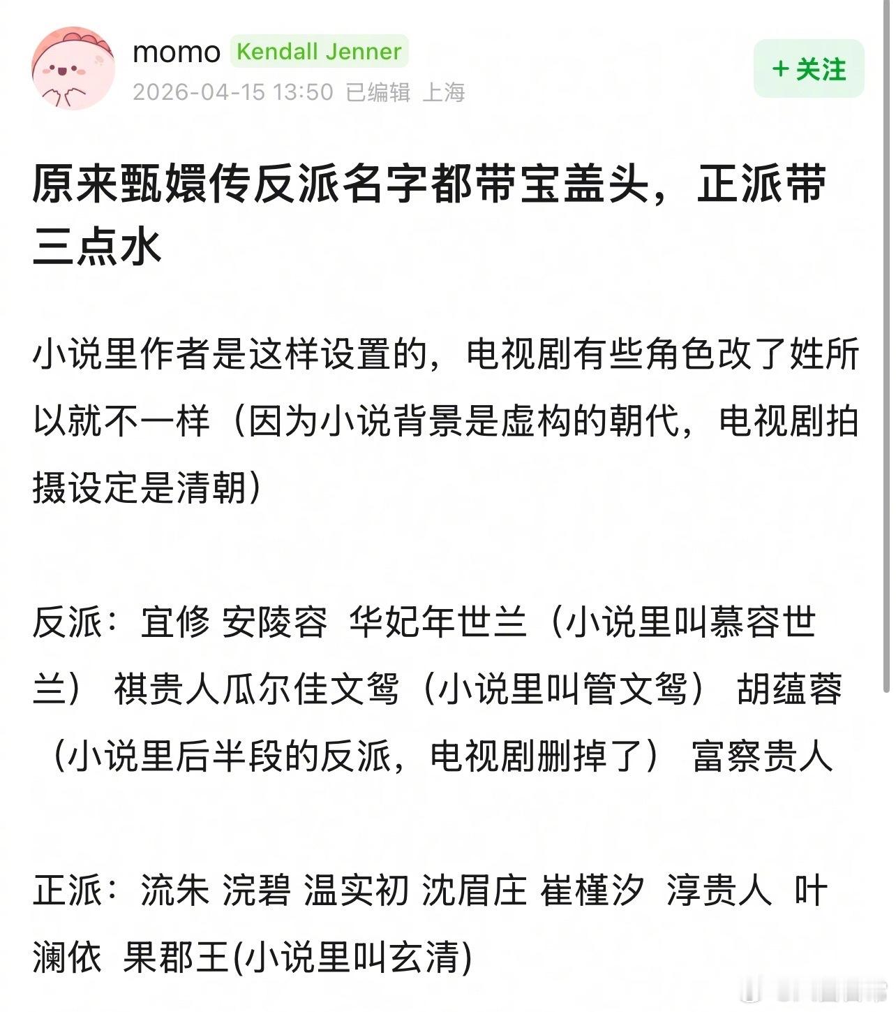 原来甄嬛传反派名字都带宝盖头,正派带三点水