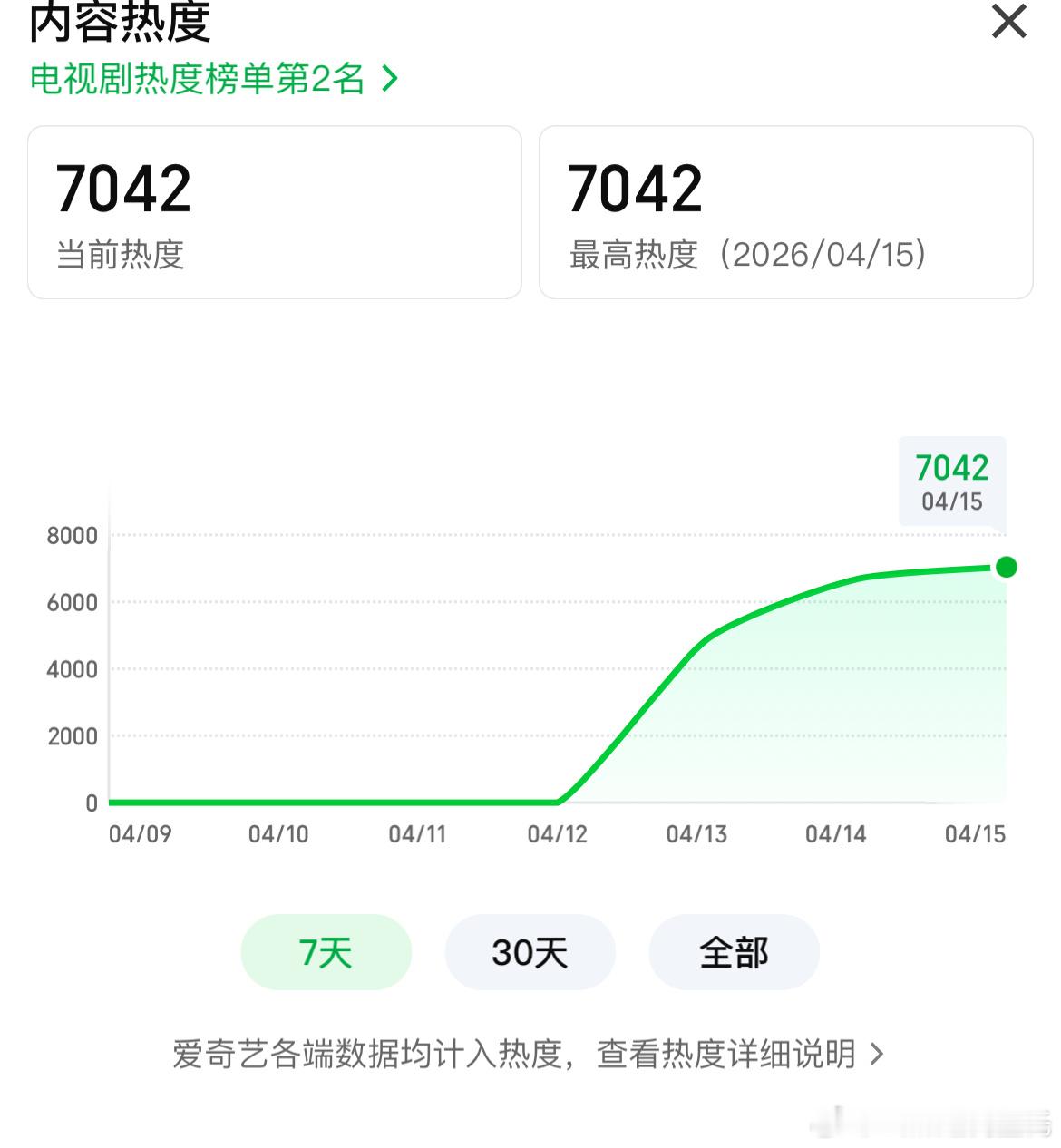 钟汉良、朱珠蜜语纪爱奇艺站内热度值破7000 实时7052腾讯站内热度值实时25374,今晚冲26000