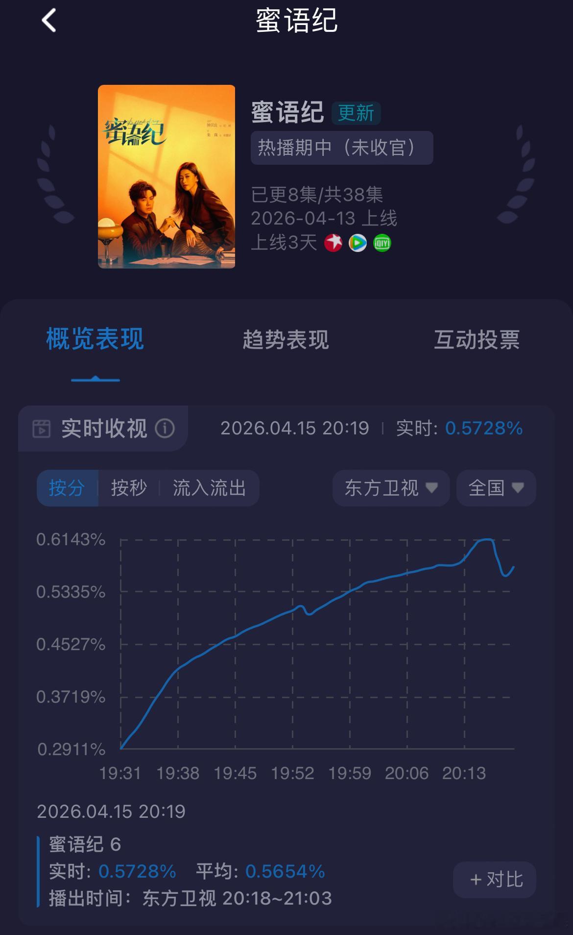 开播第三天,蜜语纪收视率 酷云收视稳定增涨ing