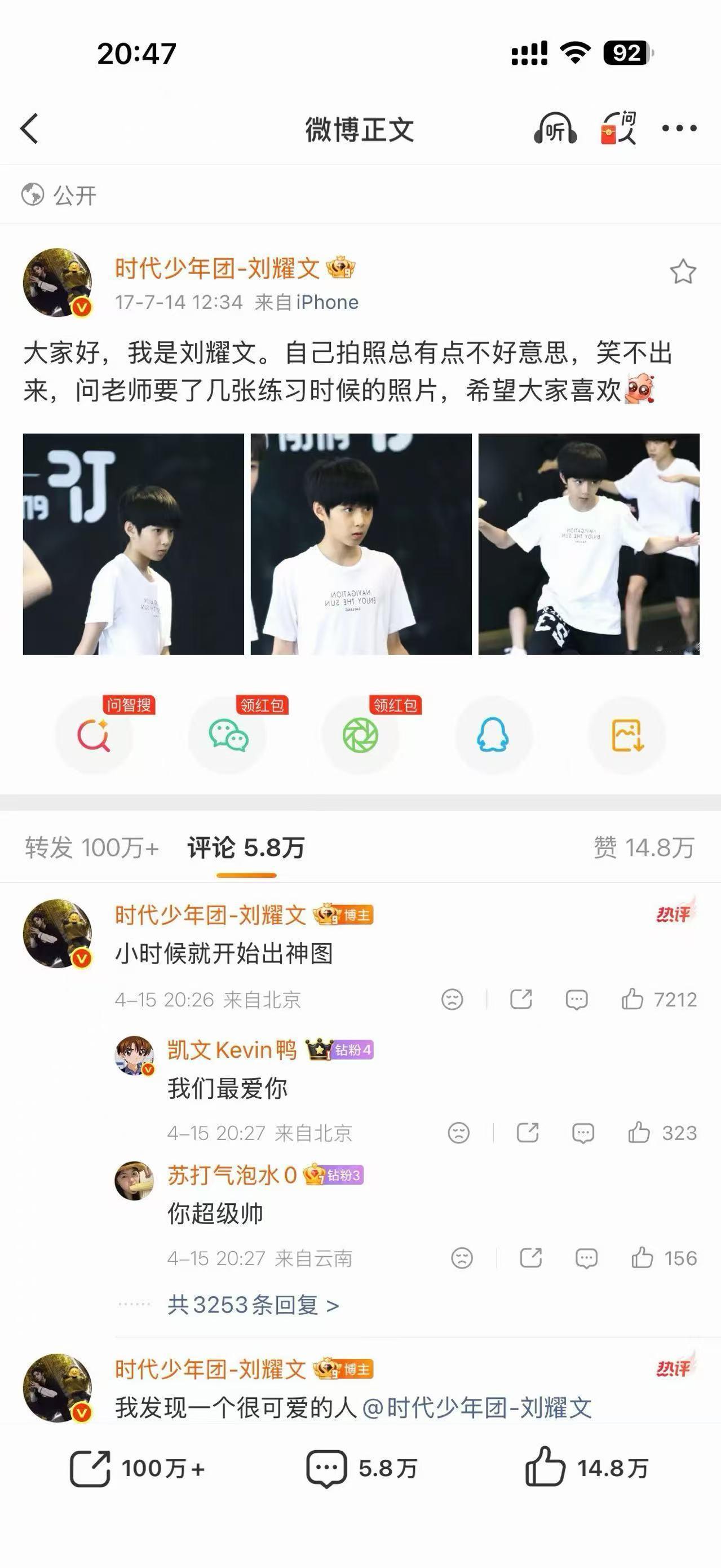 刘耀文刘耀文评论九年前微博 耀文你也太可爱了!这个耀文就这样专门跑到自己17年小时候的练习图下评论和粉丝互动