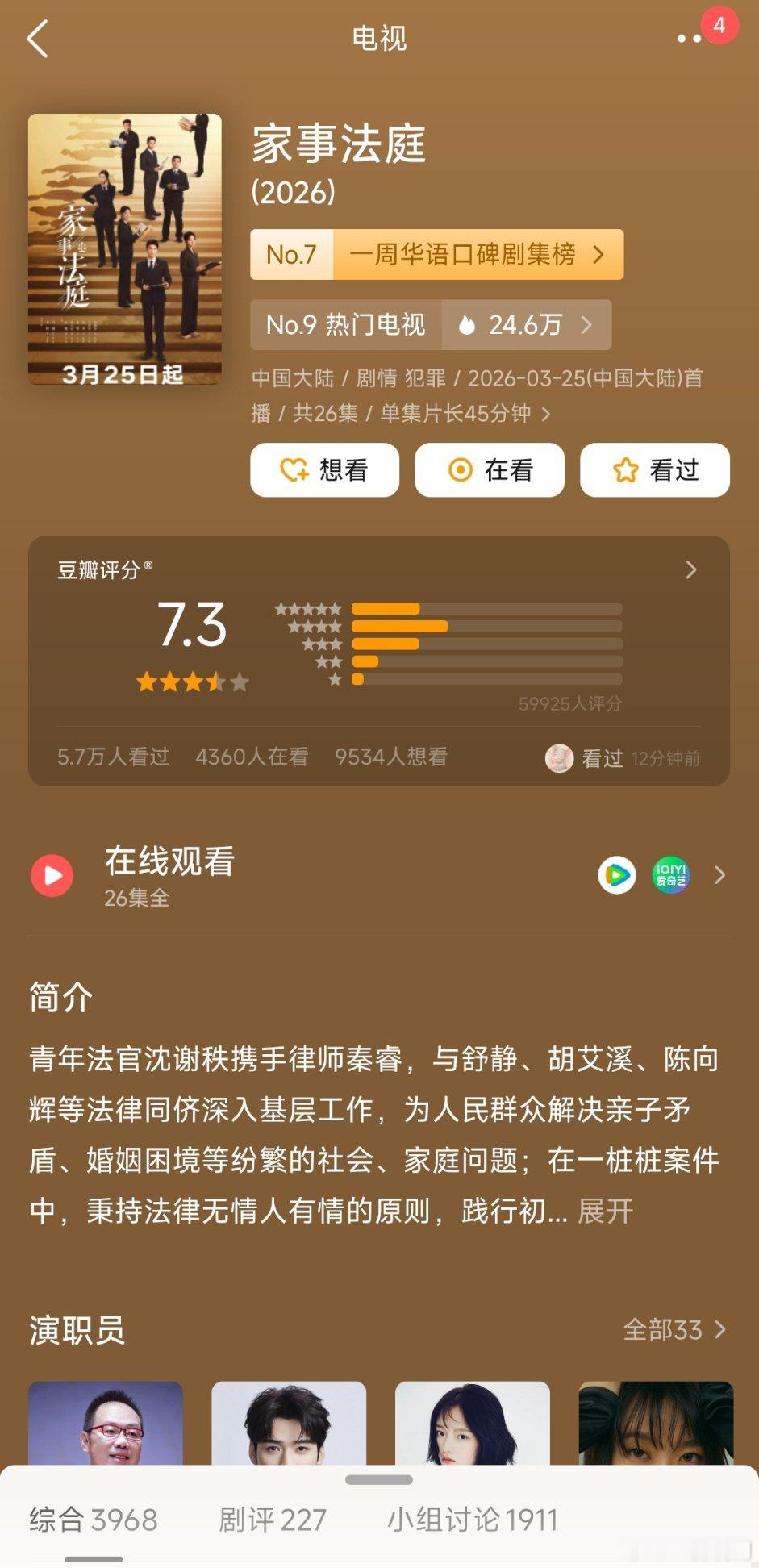 龚俊、任敏主演的口碑剧《家事法庭 》涨分至7.3,在职业剧里算很好的分数了,感觉还会继续涨
