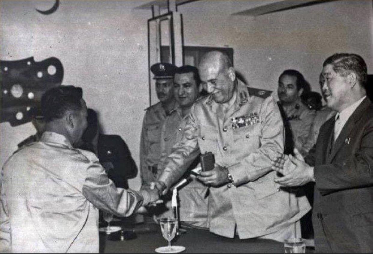 1973 年十月战争期间,应埃及的请求,朝鲜派出一支经验丰富的飞行员中队参战。该中队共有 20 名飞行员、一个连的士兵和翻译人员。其中一些人为了战争和与阿拉伯埃及共和国并肩作战而牺牲,另一些人则受到了埃及领导人的表彰。 朝鲜曾在1973年的“十月战争”期间,派遣20名资深飞行员以及士兵和翻译人员前往埃及提供支援;其中部分人员在战斗中阵亡,另有一些人则受到了埃及领导人的表彰。 这一说法在历史上确有其事:战前,朝鲜确实曾向埃及的Bir Arida基地派遣了约20名米格-21战斗机飞行员及后勤支援人员;他们在那里执行了战斗任务,并曾与以色列的F-4“鬼怪”式战斗机发生交火。 随附的四张图片均为当时的旧照,分别展示了朝鲜人员与埃及官员的合影、集体聚会场景、握手仪式,以及刻有朝鲜语和阿拉伯语铭文的朝鲜阵亡空军烈士墓碑。