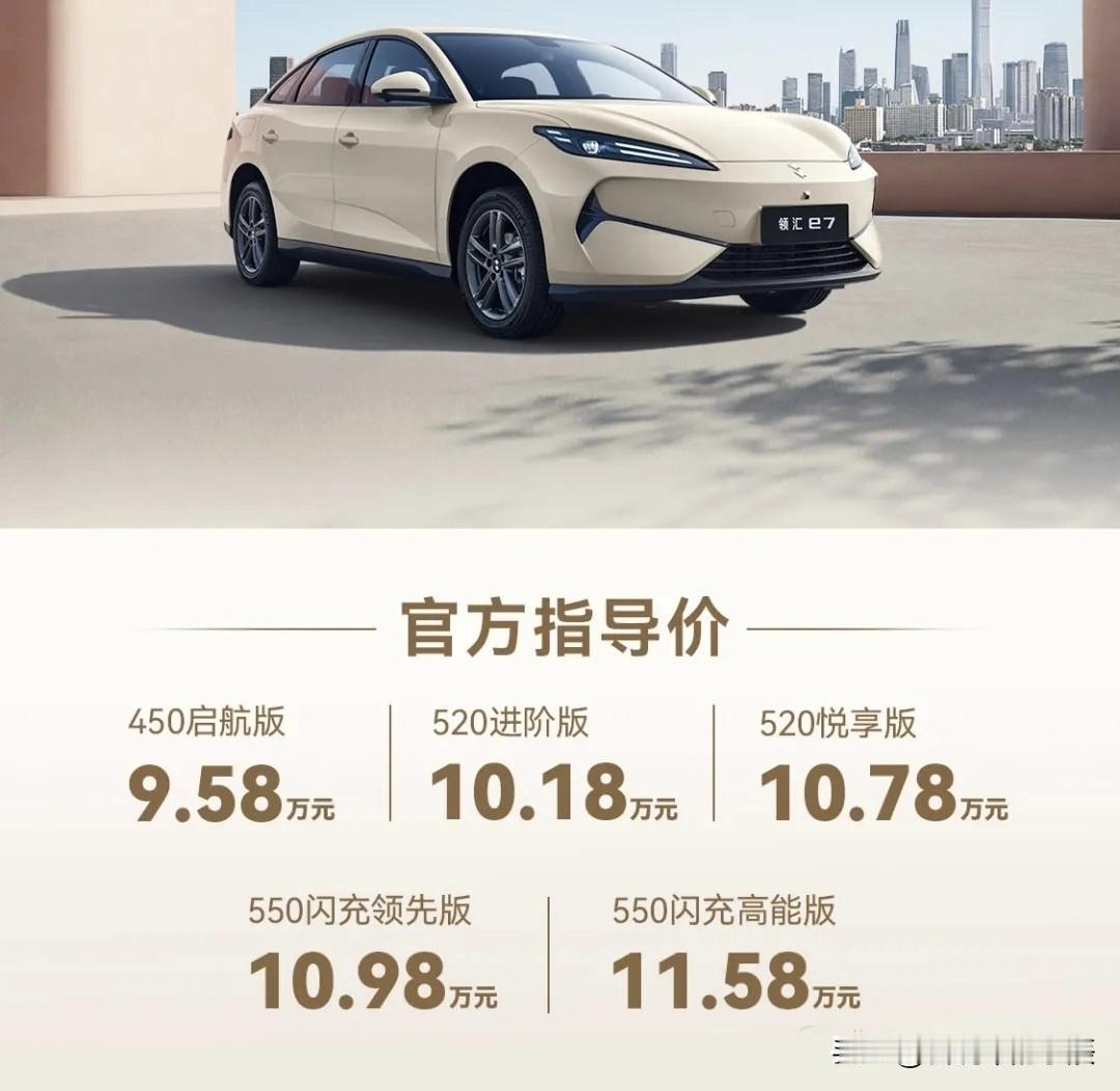 领汇e7正式上市:营运车也能享受闪充自由! 4月15日,大空间闪充中级纯电轿车领汇e7正式上市,官方指导价仅9.58万元—11.58万元,一举打破“闪充专属家用车”的刻板印象——营运车同样搭载闪充技术,网约车主的福音来了! 新车搭载第二代刀片电池与闪充技术,550公里超长续航,更支持9分钟充至97%,告别里程焦虑与漫长等待。无论是家用还是跑营运,效率直接拉满。 更贴心的是权益政策:所有车主均可享受12个月闪充免费权益;非营运车主享三电终身质保,营运车主享三电6年或60万公里质保。大空间、高品质、低成本,领汇e7让每一公里都更从容。 闪充不限身份,赚钱不必等待。领汇e7,为每一位奔波的你而来。新能源闪充 领汇e7 e7正式上市