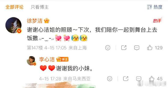 徐梦洁回复李心洁李心洁感谢徐梦洁教饭撒 原来温柔的李心洁也有如此可爱的一面,跟着徐梦洁认真练习互动技巧,每一个小动作都软乎乎,粉丝直接被萌晕。