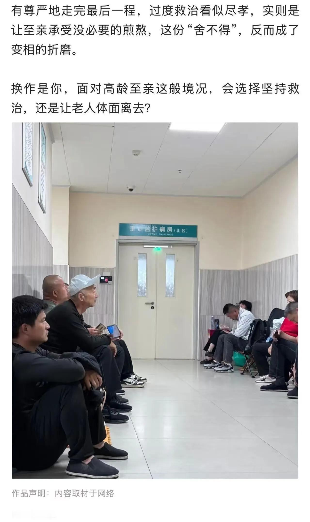 “那是我爸,我能怎么办?”97岁老人插满管子撑了3个月,子女一句话让人破防 月入1.8万、医疗全报,六个子女却谁都不敢签那一纸放弃书 河南一位97岁的离休干部,月退休金1.8万,看病全报销。六个子女轮流守着,在ICU里硬撑了三个月。老人身上插满管子,认不清人,最后还是肾衰竭走了。 守夜的时候,有亲戚小声嘀咕:早该让他体面走了,这么遭罪图啥? 可子女烧纸时红着眼圈说了一句话,当场把所有人都噎住了——“那是我爸,我能怎么办?” 就这一句,戳中了多少人的心? 一、法律上,谁能决定“拔不拔管”? 咱们先说法律。很多人以为,到了这一步,家属说放弃就能放弃。其实没那么简单。 根据《民法典》和《医疗机构管理条例》,患者本人的意愿是第一位的。如果老人在清醒的时候签过“生前预嘱”,明确说“我到了什么情况就不救了”,那医院和家属都得尊重。 但现实中,绝大多数老人根本没签过这种东西。那谁说了算? 法律上,近亲属可以代为决定,但有个前提:必须是为了患者的最佳利益。而且,如果六个子女意见不统一,医院也很为难。谁签字谁负责,万一另一个子女事后告你“故意杀人”怎么办?虽然刑事上很难构成,但民事纠纷跑不了。 更关键的是,放弃治疗不等于遗弃。法律明确区分:如果医生判断已经没有任何治疗意义,只是靠机器维持,家属决定不再继续“无效医疗”,这不违法。但如果是老人还有救治希望,家属因为舍不得花钱或者嫌麻烦而放弃,那就可能涉及遗弃问题了。 这个案子里,97岁、肾衰竭、认不清人,医学上基本可以判断是“不可逆的终末期”。从法律角度看,子女如果集体同意转为安宁疗护、撤掉无效的抢救措施,是完全可以的,不会承担法律责任。 那他们为什么不敢? 二、放不了手的,到底是亲情还是面子? 六个子女,月入1.8万退休金,医疗全报销。说实话,钱不是问题。那卡住他们的到底是什么? 第一,怕被人戳脊梁骨。亲戚邻居一句“你看那谁谁,舍不得给老爹治病”,你受得了吗?在农村、在小城市,这种舆论压力能把人压死。 第二,怕自己心里过不去。“万一我爸还能再撑两天呢?”“万一我签了字,他明天就醒了呢?”这种“万一”的念头,能把子女折磨疯。 第三,说实话,每个月1.8万的退休金,确实也是现实考虑。老人多活一个月,家里就多一笔稳定收入。虽然这话难听,但有些子女心里未必没算过这笔账。 可问题是,用管子留住一具逐渐枯萎的躯壳,用药物维持一丝若有若无的呼吸,这到底是在延续老人的生命,还是在延续子女的“孝子”人设? 三、真正的孝顺,是学会“放手” 我有个朋友说过一句话,我记了很久:“如果有一天我躺在那,管子一拔,谁拔我感谢谁。” 老人97岁了,认不清人,全身插满管子,疼得皱眉却说不出话。你说这是“活着”吗?这叫“受罪”。 我们总以为“尽力”就是孝顺。不惜一切代价,能多拖一天是一天。可你想过没有,那个代价是谁在付?是老人自己。他在用身体付,用尊严付,用最后那点残存的意识付。 而子女的“不放弃”,有时候不过是买自己一个心安。“你看,我尽力了,我没放弃,我是孝子。”可这个“心安”,是建立在老人的痛苦之上的。 真正的孝顺,不是拼命延长生命的长度,而是努力保住生命的质量。 当医疗技术能延长生命,却无法延长生活质量的时候,我们该学会的不是“如何救”,而是“何时停”。 换作是我,我会选择让老人体面地走。不是不爱,是太爱了。爱到不忍心看他被管子绑着、被疼痛折磨着、连亲人都认不出的样子。 毕竟,死亡不是终点,遗忘才是。让亲人带着尊严离开,才是我们能做的最后一件温柔的事。 最后问大家一句 如果是你,97岁的父母躺在ICU,浑身插满管子,医生说基本没希望了。你会签那一纸放弃书吗? 你觉得,子女守了三个月不敢放手,到底是孝顺,还是自私? 欢迎在评论区说说你的真实想法。 来源: 本文根据真实社会事件改编,人物信息已做模糊处理。
