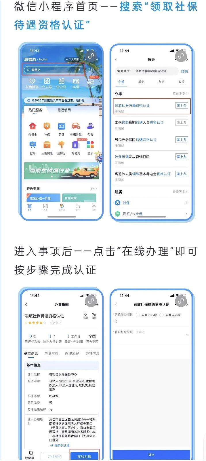 【海南人注意!养老金资格认证别忘做,否则停发!老牛教你手机搞定】老铁们,家里有退休老人的,今天老牛说件大事儿。4月15日了,很多人是不是忘了做一件事——养老金资格认证。 千万别觉得麻烦,这事直接关系到养老金能不能正常发放。2026年起,海南全面实行“递延式认证”,超期哪怕一天,养老金都可能暂停发放。补完认证虽然会恢复,但停发期间万一急用钱就麻烦了。今天老牛帮大家把“认证”这事儿掰扯清楚。 一、多长时间做一次? 退休人员情况不同,认证周期也不一样: 1、 城镇职工(含灵活就业)退休人员:每年12个月内至少认证1次。 2、 城乡居民养老保险待遇领取人员:每6个月需要完成1次认证。 认证周期从上一次成功认证的日期开始往后算365天。比如2025年4月1日认证的,2026年4月1日前必须做完下一次,超过截止日期哪怕一天,养老金就会暂停,直到完成认证才能恢复。建议记在手机日历里,或者让子女帮忙设个提醒。 二、手机上怎么操作?(海易办最方便) 手机操作分几步,很简单: 1. 打开“海易办”小程序:微信或支付宝搜索“海易办”。 2. 搜索服务:首页搜索栏输入“领取社保待遇资格认证”。 3. 选择办理:点击“掌上办”,选择“办理”。 4. 填写信息:给谁认证选谁——给自己做选“为自己办理”;帮爸妈做选“为他人办理”,填入身份证号。 5. 人脸识别:对着镜头按提示眨眨眼、张张嘴,几秒钟就能完成。 不会用手机的老人,子女在手机上代办就行,不用去社保局排队。认证识别成功,页面会直接显示“认证成功”的提示,如果没有出现提示或提示失败,可以换个光线好的地方再试一次。 三、还有哪些认证方式? 1、自助机:带上身份证,去各市县政务服务中心的“海南政务便民服务站”或农村商业银行网点,刷脸就能完成。 2、 上门认证:高龄、病重、行动不便的老人,子女可向社区或社保经办机构申请预约上门服务。 3、 境外认证:在国外居住的,通过“中国领事”APP线上办理。 4、 无感认证:如果老人有乘高铁、飞机进出岛、住院就医等记录,系统会自动比对,无需本人操作。 四、超期没做怎么办? 万一漏掉了导致停发,也不用太慌。尽快完成认证,系统审核通过后,次月就会恢复发放,同时一次性补发停发期间的所有养老金。不过老牛还是建议大家赶早不赶晚,省得麻烦。 五、常见问题解答 1、 问:认证失败了怎么办? 答:换个光线好的地方再试一次,或者让子女帮忙操作。如果多次失败,可能是照片信息比对不上,建议去社保经办机构窗口处理。 2、 问:去年12月刚认证过,现在4月要再做吗? 答:城乡居民每6个月做一次,12月认证的,最晚次年6月前完成即可。但建议早做,避免忘记。 3、 问:我怎么查上次认证是什么时候? 答:登录“海易办”APP,在个人社保账户中可查询最近一次认证时间。 4、 问:换了手机号收不到短信提醒怎么办? 答:尽快到社保经办机构或通过“海易办”更新联系方式。 5、问:父母在外省帮我带小孩,能在当地认证吗? 答:可以,通过“掌上12333”APP或“电子社保卡”小程序全国通办,不用专程回海南。 今日互动: 你帮家里老人做养老金认证了吗?遇到什么问题?评论区聊聊,老牛帮你支招!(图源:网络截图) 海南养老金 养老金认证 海易办