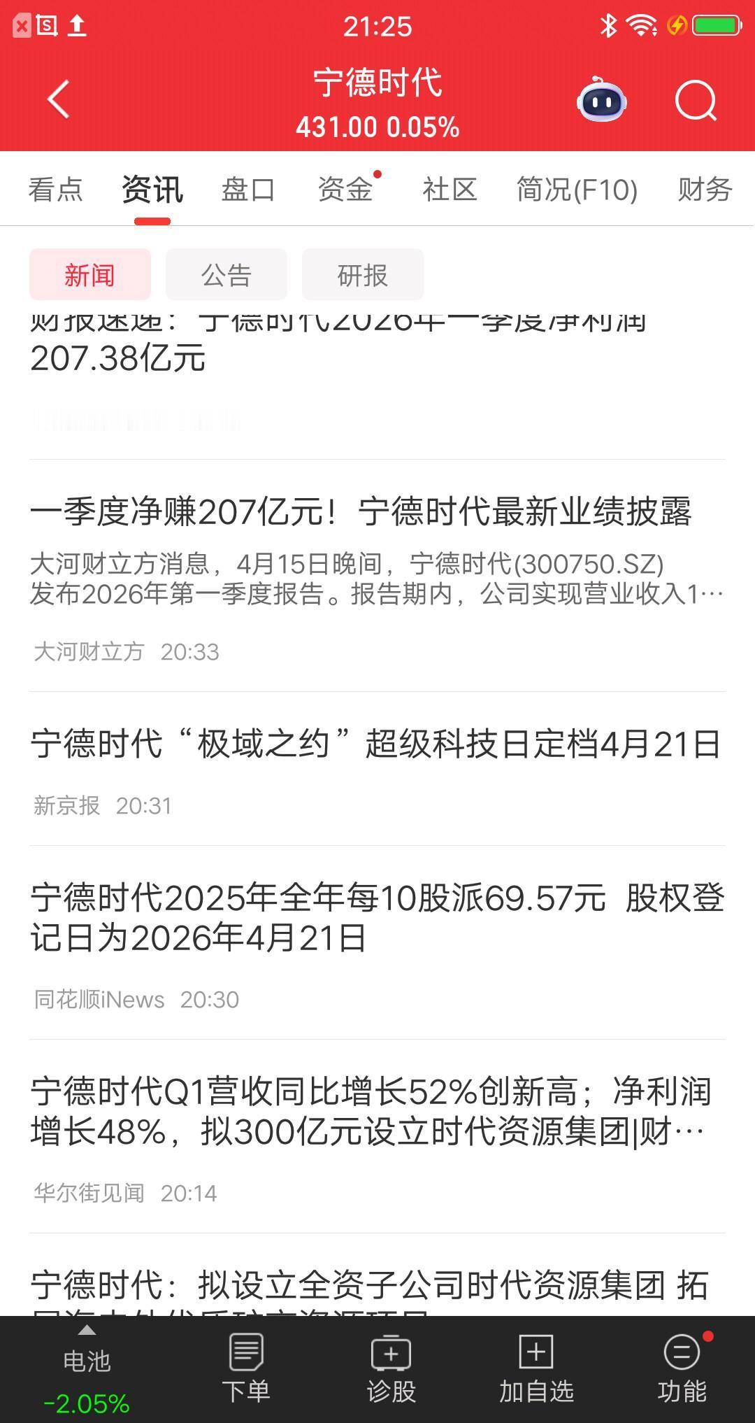 一位河南的股民,准备明天30万梭哈宁德时代。他把看好的逻辑发帖分享,引来无数网友围观。他盘后看到宁王冲上热搜第一,出于好奇心就点进去看看,发现宁王放出了两条大消息。 第一条是,一季报净利润207亿增长48%,作为万亿巨头,还有如此强劲的增长,让他感到很震撼。全球新能源汽车与储能市场需求增长,带动宁王动力电池和储能电池出货提升,未来还将继维持高增。 第二条是,本月21号举办超级科技日,宁王将发布三电一储四款突破性产品。1.全球首款大规模量产钠新电池,2.骁遥双核电池突破单一体系瓶颈,3.第二代神行超充电池刷新超充纪录,4.发布磐石底盘 他深入了解后,感觉宁王太牛了,肯定会吸引市场的目光,说不定主力会拉一波大行情,一股想买的冲动涌上心头。 有人说看消息炒股等于瞎蒙,宁王盘子太大,很难有大行情的。宁王产业链的个股,机会比宁王更大。 市场最终如何反应,还要耐心的等待。