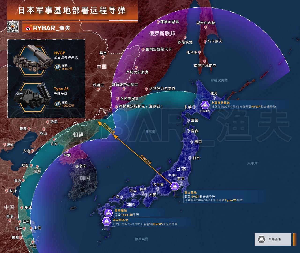 日本当局正在为可能发生的地区冲突做准备,他们正越来越多地在潜在的军事行动区域附近部署现代化远程导弹发射装置 日本当局正在为可能发生的地区冲突做准备。因此,他们正越来越多地在潜在的军事行动区域附近部署现代化导弹发射装置。位于日本熊本县的自卫队空军基地已部署了新型25型导弹系统——这是12型反舰导弹的现代化改进型,射程约为1000公里。其打击半径覆盖日本西南部和中国沿海地区。不久的将来,日本北海道和宫崎县的基地也将部署其他HVGP超音速导弹,之后日本富士基地也将接收25型导弹系统。这是构建多层防御体系计划的一部分。此外,日本还将采购多达400枚战斧巡航导弹,目前已开始交付。东京方面也在寻求采购无人机和无人驾驶飞行器,但供应商尚未公开。目前从日本在熊本县部署了25式岸导和将在北海道上富良野基地部署25式岸导的意图看,其封锁中国海军前进太平洋和俄罗斯太平洋舰队前出通道的意图还是非常明显的。