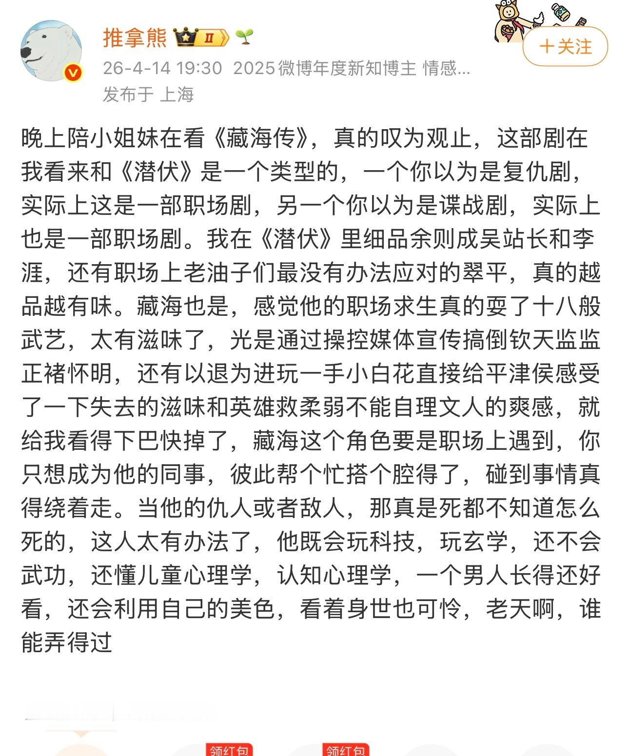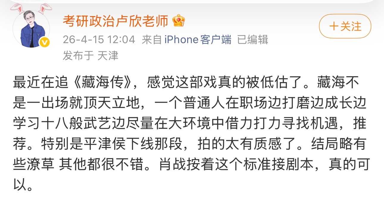 每次肖战写的杀青小结都是最贴近人物灵魂的, 比如藏海 睡个好觉, 他一定很爱他
