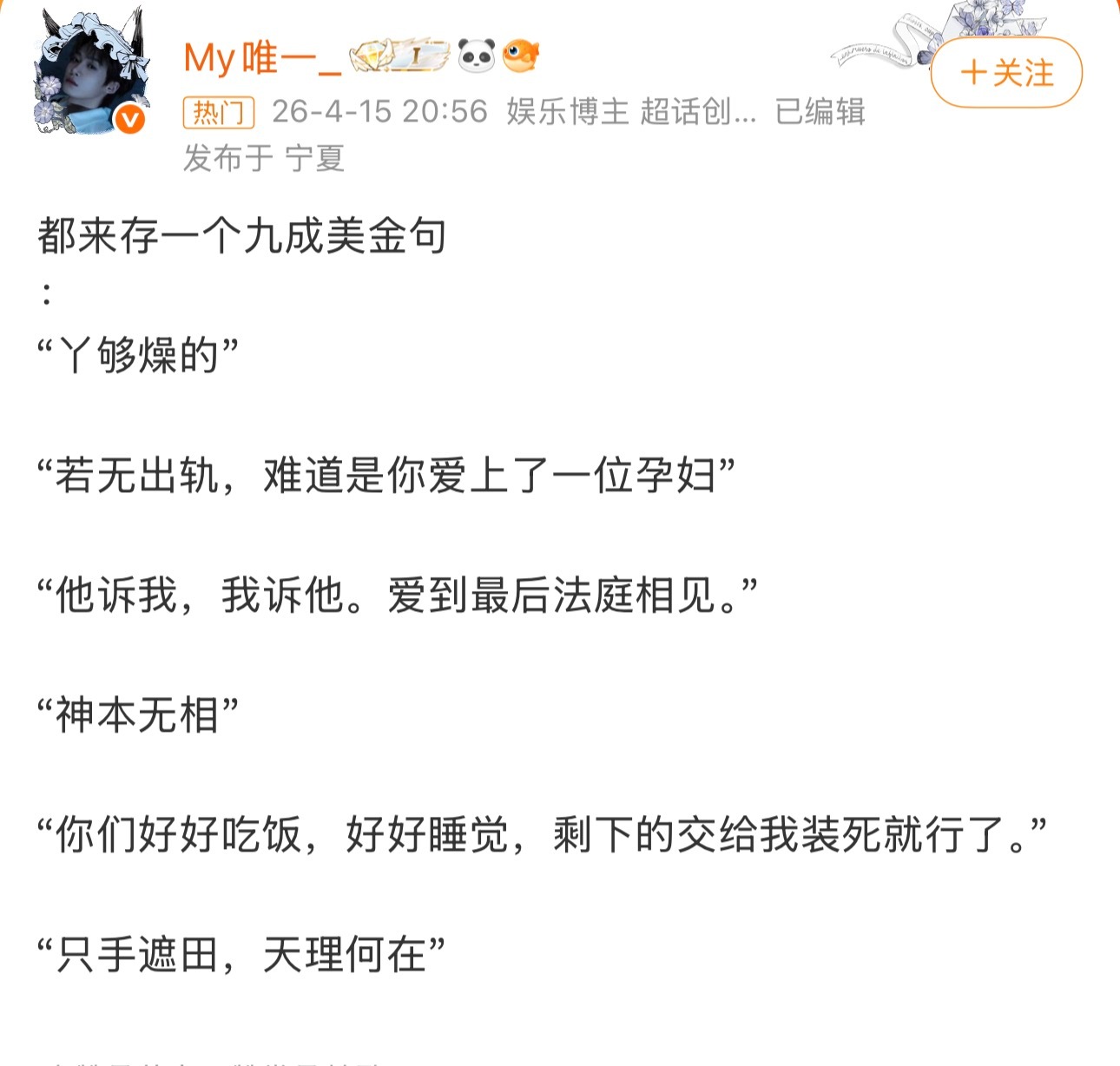 九成美金句湖南卫视这季花少可以请美美姐吗(美美姐又美又有话题又有梗多适合!!)??