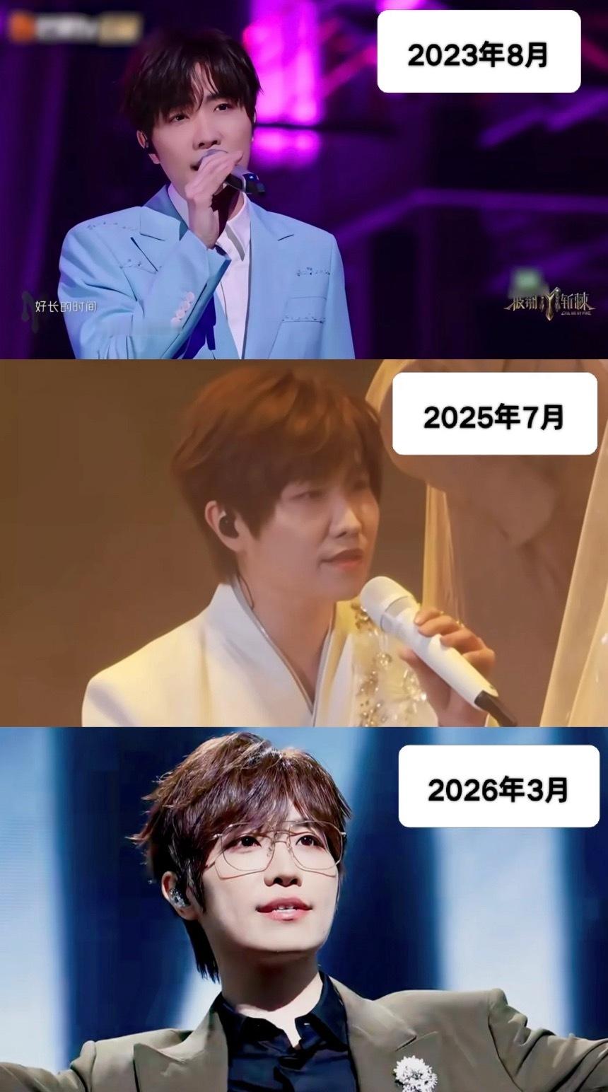 良大颜值变化挺大啊23年参加披哥的时候还不扎眼,25年7月张远演唱会上初见端倪,开始变瘦了,26年3月时间折叠演唱会上的金丝眼镜西装霸总,给我迷的不行!