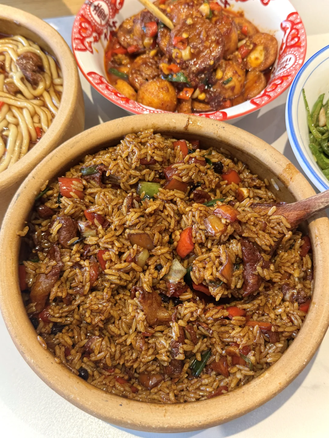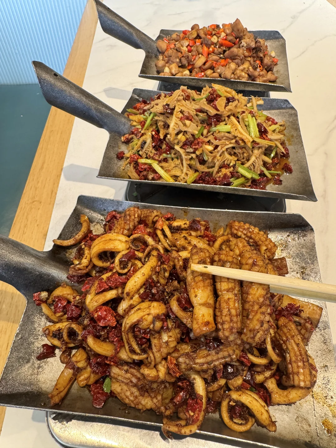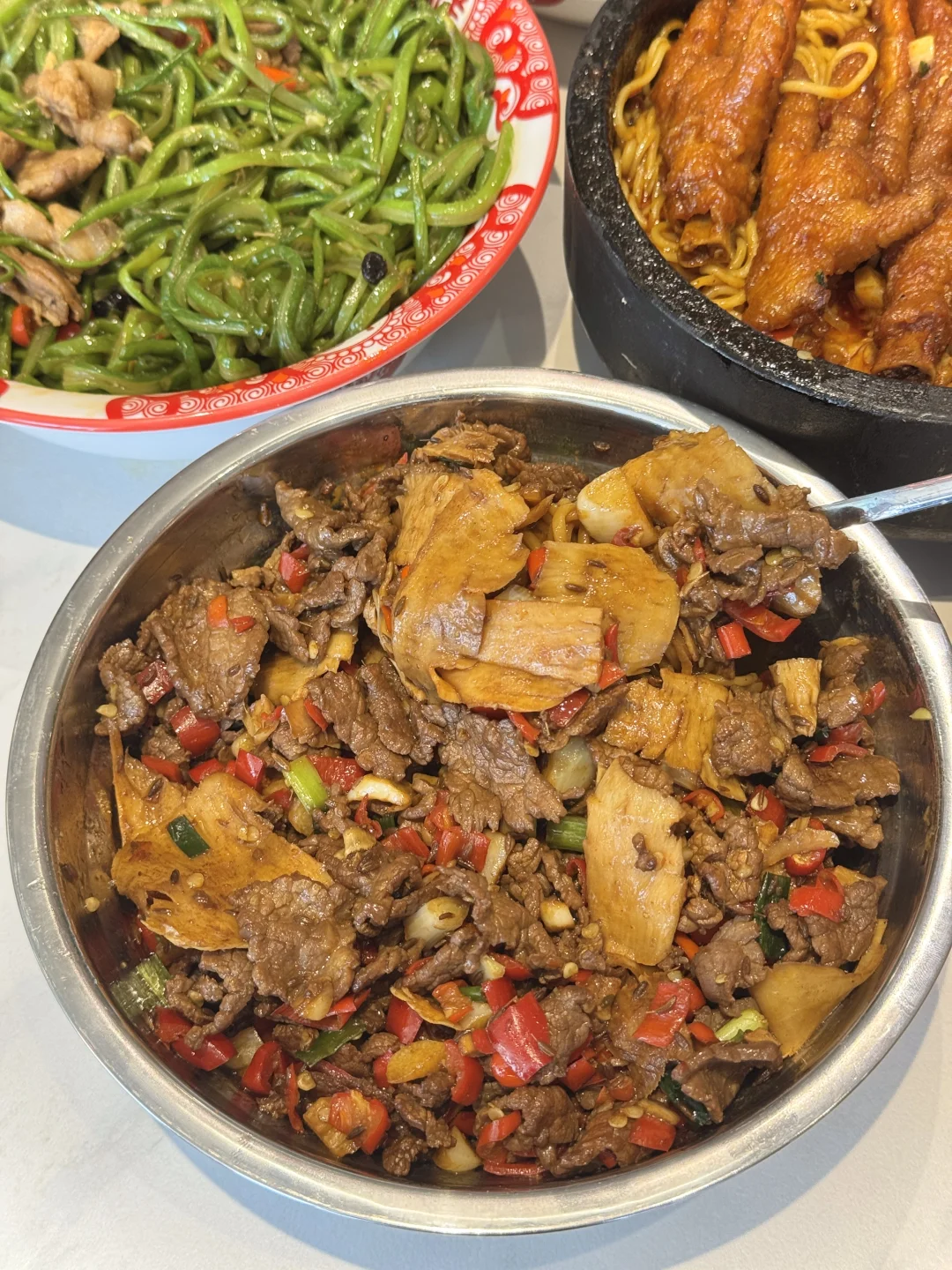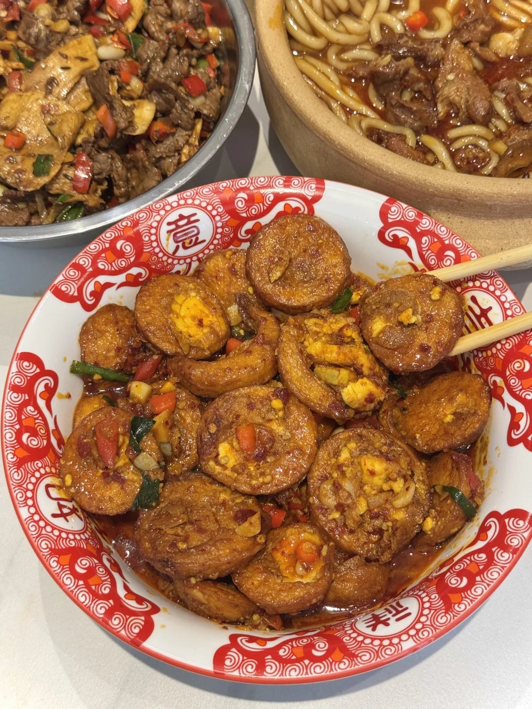 感谢老乡推荐,真正的湖南驻京办!!! 正宗湖南口味,饭点座无虚席,我愿称这种接地气的小店才是真正的“舌尖上的美食”!! 我们点了开花烧卖、金鱼小馄炖、玉米粑粑等特色湖南小吃、铲铲鸡、铲铲鱿鱼、铲铲牛百叶好香~ 小炒金钱蛋,肉汤拌饭,牛肉牛板筋道道菜都下饭、老板hin爱惜自己家的口碑,主打好吃又平价!满满一桌都没踩雷!! 记住这个地址📍湘桐湖南菜(燕灵路店)