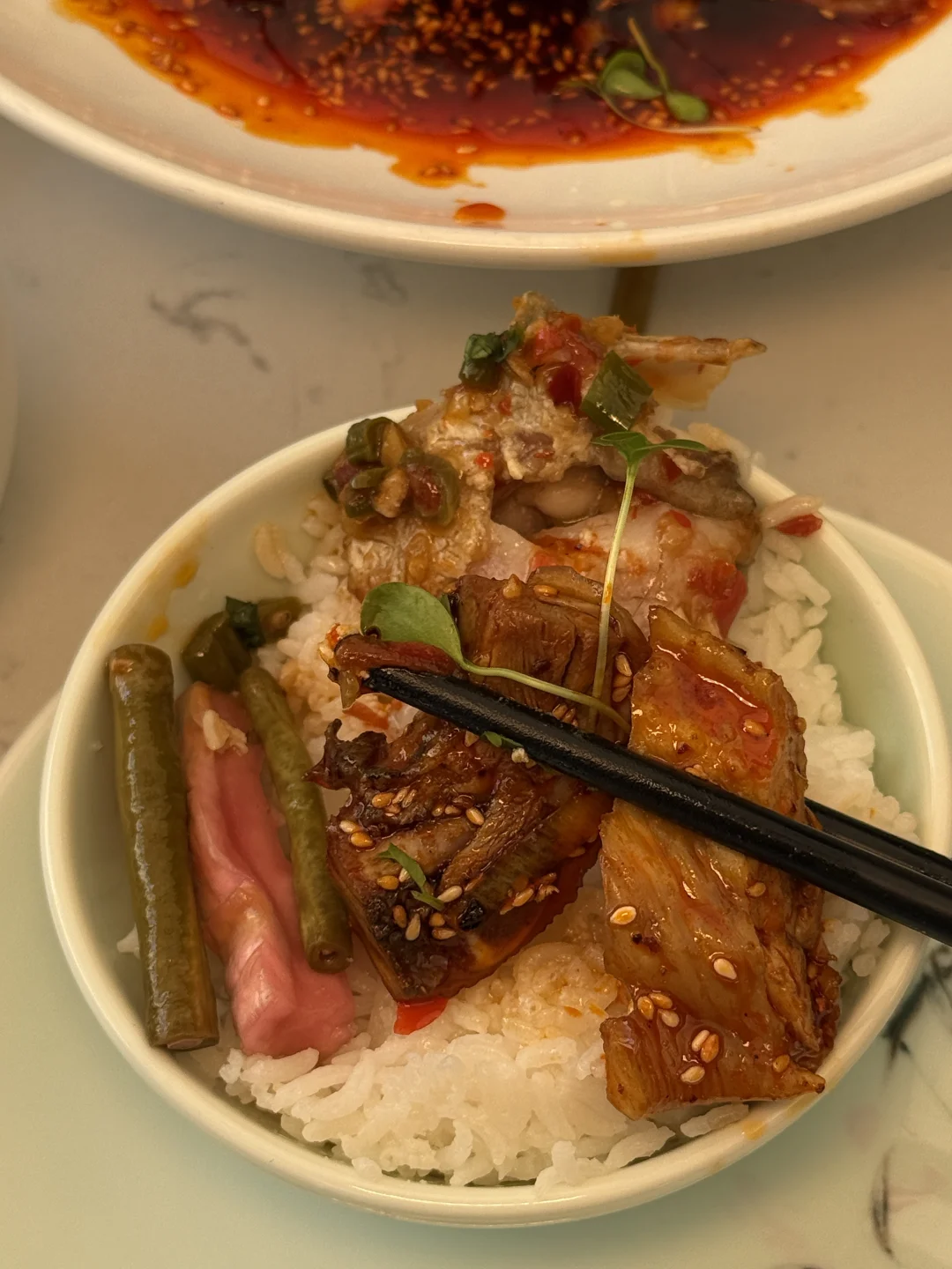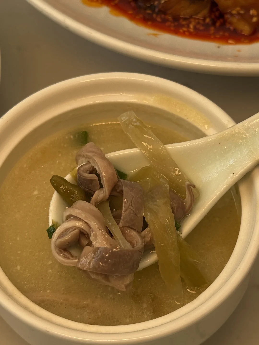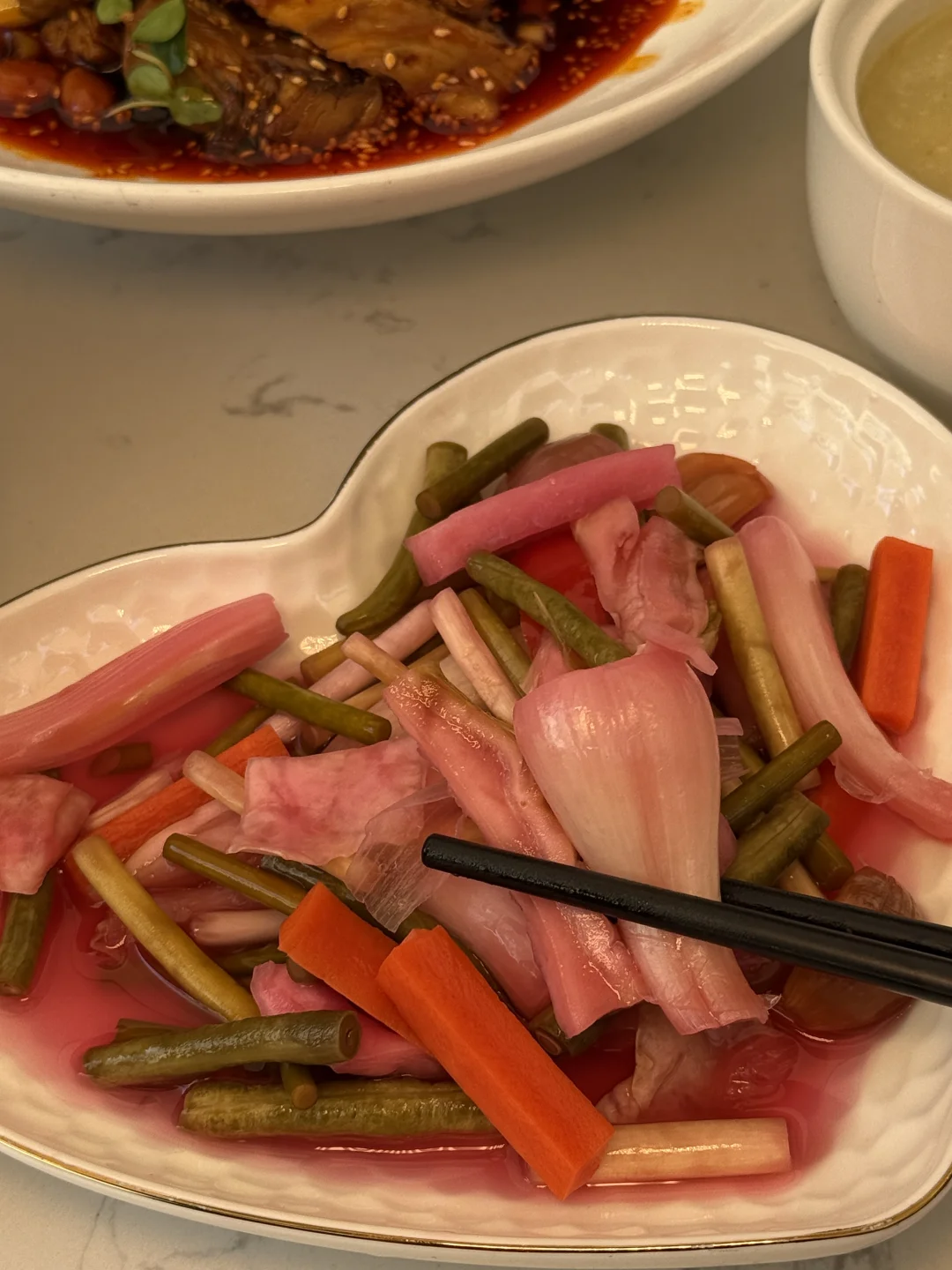 藏在市中心老巷里的清代老院子,一进门就有烟火气。它家川菜传承是来自张中尤大师!!吃过才知道,果然是本地人私藏的资格川菜! 个人推荐红油凉拌鸡鸡肉紧实,越吃越上头家还有常青豆烧烫皮兔兔肉软嫩没有异味,泡椒豇豆江团没有什么鱼刺很入味好下饭,一定要试一下它家的泡菜好特别!!