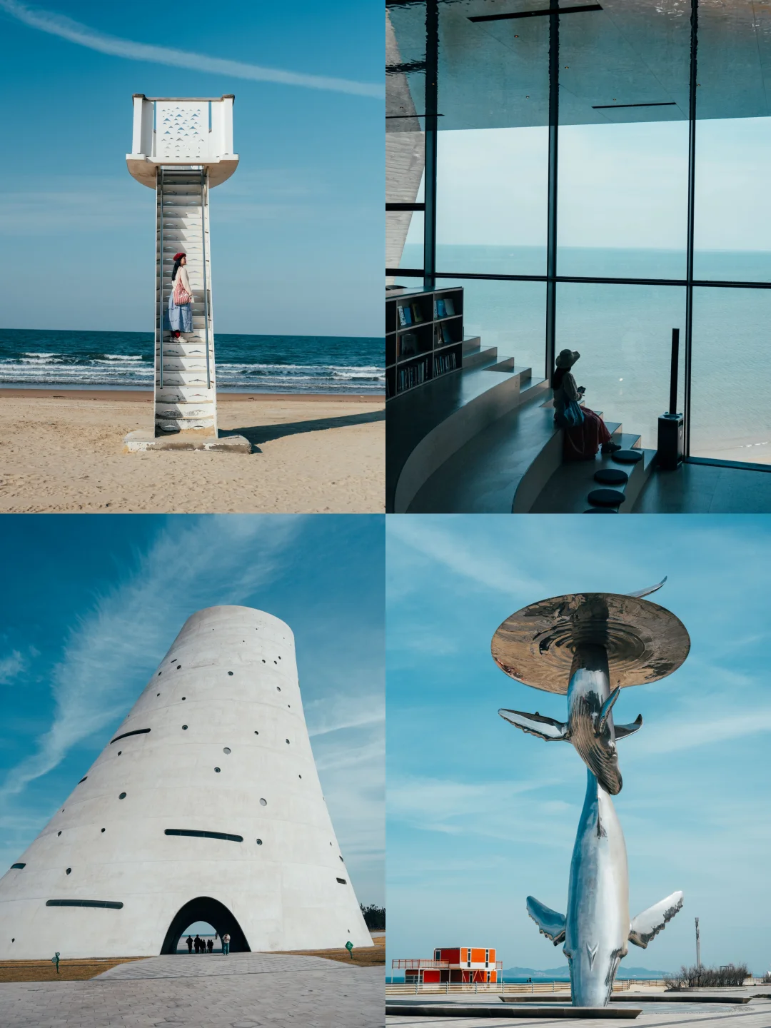 ✅金沙滩:可以沿着金沙滩-孤独的鲸-时光塔这样的顺序,时光塔很值得一看,各个角落都很适合拍照,人少又好chill~
