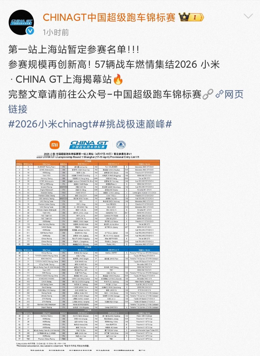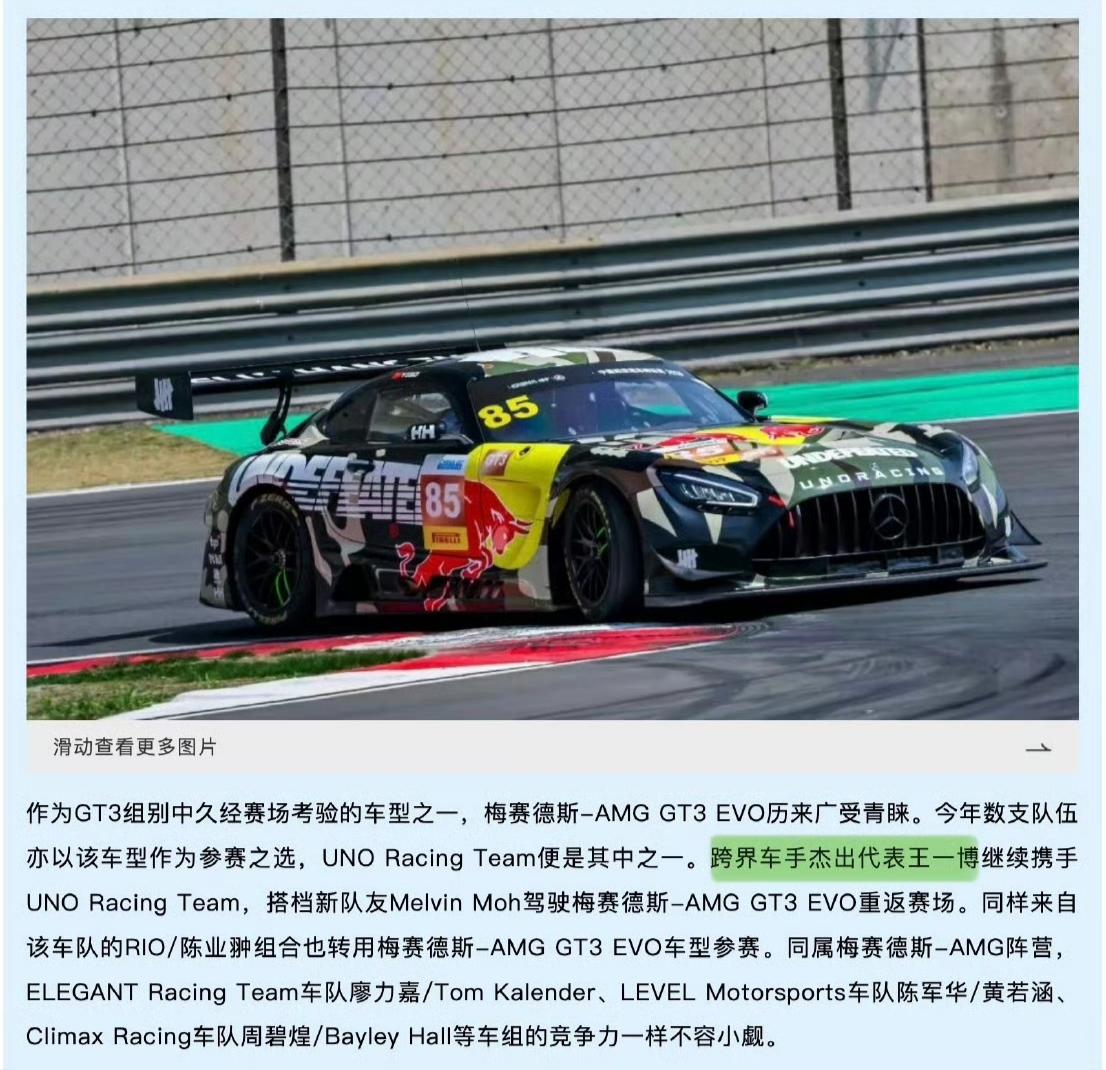 China GT公主号——“跨界车手杰出代表王一博” 从季前测试47台GT赛车,到57辆参赛名单,参赛规模再创新高!而“跨界车手杰出代表”王一博参赛的GT3组别就有28辆车! 王一博,遇强则强,强者更能够凭借一己之力吸引强者同行、同场竞技。 现在不仅仅是业内,就连更多的大众都知道了真正带着China GT出圈的那个人,是“跨界车手杰出代表王一博”。因为他不仅仅有巨星的影响力号召力,更具备职业车手的实力水准。 王一博
