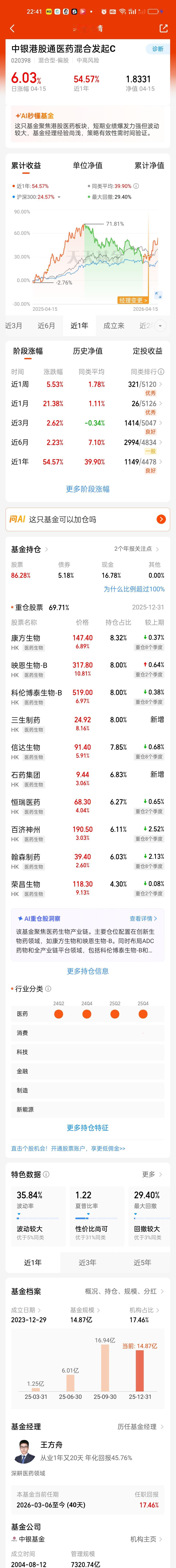 才换基金经理不久的中银港股通医药今天给人一种眼前一亮的感觉。果然换帅如换刀,效果立竿见影。才40天时间就收获了17.46%的上涨,今天更是爆涨6.03%,强势夺得今日收益冠军。把老对手永赢,长城和华安远远甩在了身后。