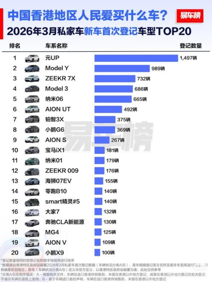 2026年开局,比亚迪在香港车市上演了一场"王者归来"!最新数据显示,3月份比亚迪以1763辆的惊人销量登顶全品牌榜首,其中元UP单车贡献1497辆,成为当月最畅销车型。