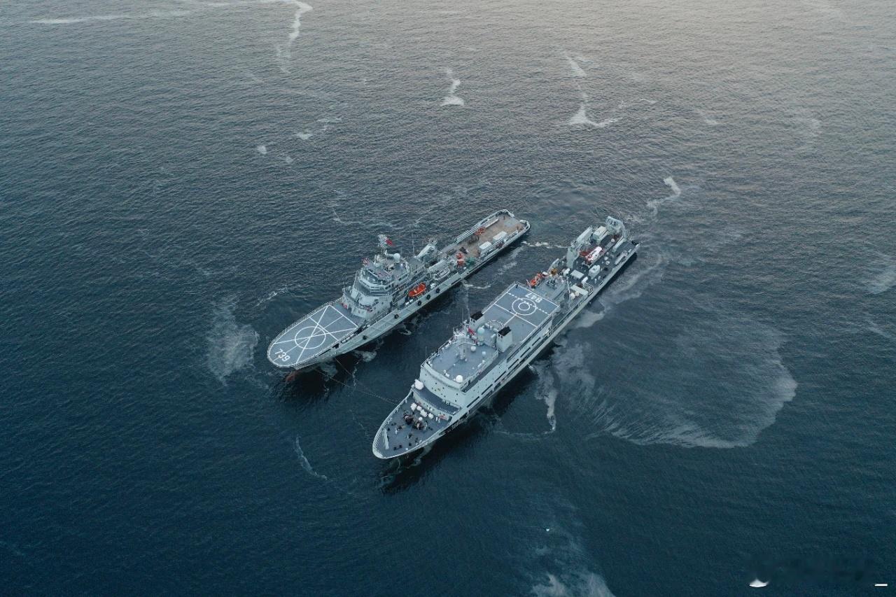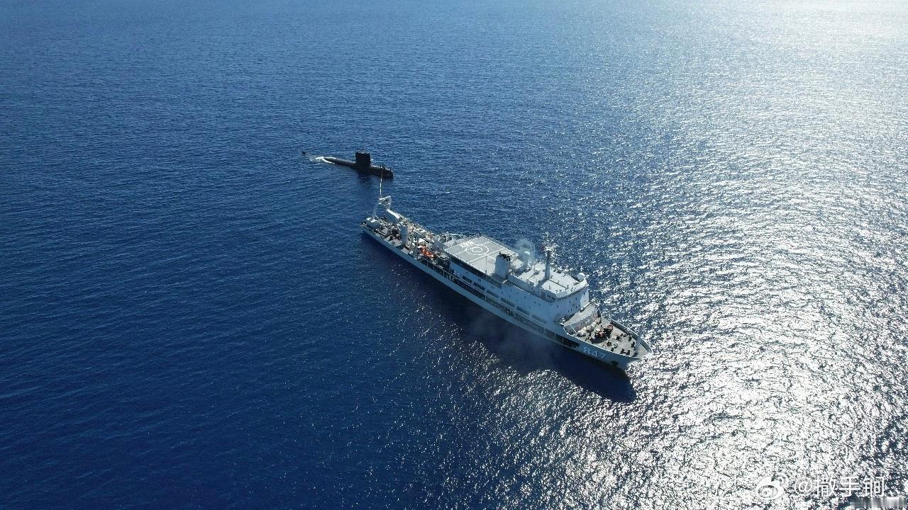 847阳澄湖船与北拖739船组成编队进行援潜救生演练。阳澄湖船并携载LR-7深潜救生艇。图二为阳澄湖船拖带039潜艇返回军港。