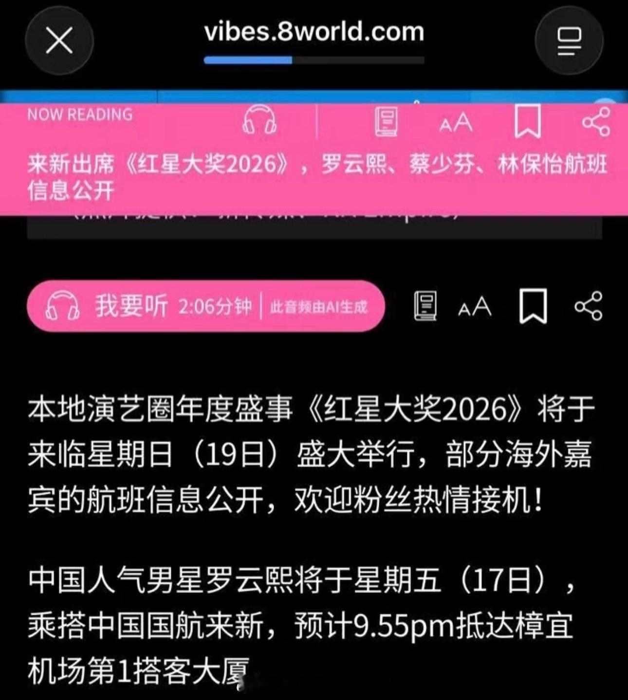新加坡 Mediacorp 公开红星大奖艺人航班信息中国人气男星罗云熙将于17日乘搭中国航班来新是公开接机,好热情啊新加坡期待罗云熙新加坡红星大奖罗云熙罗云熙