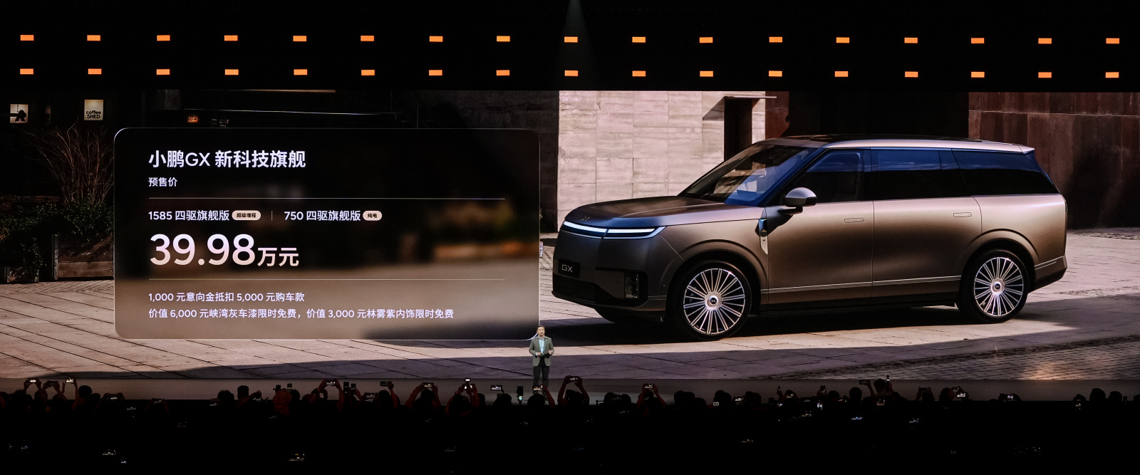 小鹏 GX 全尺寸 6 座旗舰开启预售,预售价 39.98 万元,增程版与纯电版同价。作为 SEPA3.0 架构首款车型,发布会将四大安全测试场搬上舞台,获央视盖章科技大成之作。新车搭载 AI 调光隐私玻璃、AI 无菌风冷双开门冰箱、21.4 英寸 3K 护眼大屏、33 扬声器聆境音响,配备全球唯一三排电动三折叠大六座,673L 同级最大后备箱。同时拥有 3000TOPS 算力、第二代 VLA、原生线控底盘、后轮转向与双腔空悬,5.4 米转弯半径,百零制动 34.4 米,还搭载驾驶员失能辅助系统,高速场景可自主靠边停车并呼叫救援。提供冰川白、极地黑、峡湾灰、丹霞红、云漠金哑光 5 种车身配色,限时享 1000 抵 5000 权益,峡湾灰车漆、林雾紫内饰免费选。直面沃尔沃 ES90、理想 L 系列等竞品,这一预售价格与配置表现,大家觉得如何?
