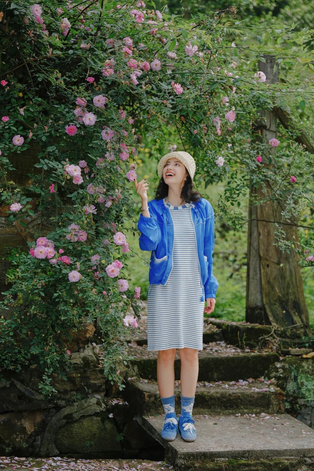 🔺双手抓一把花瓣,轻轻向头顶抛起,多按快门抓拍。如果担心表情管理不好,就低头用帽子挡半张脸,慵懒感一下就来了