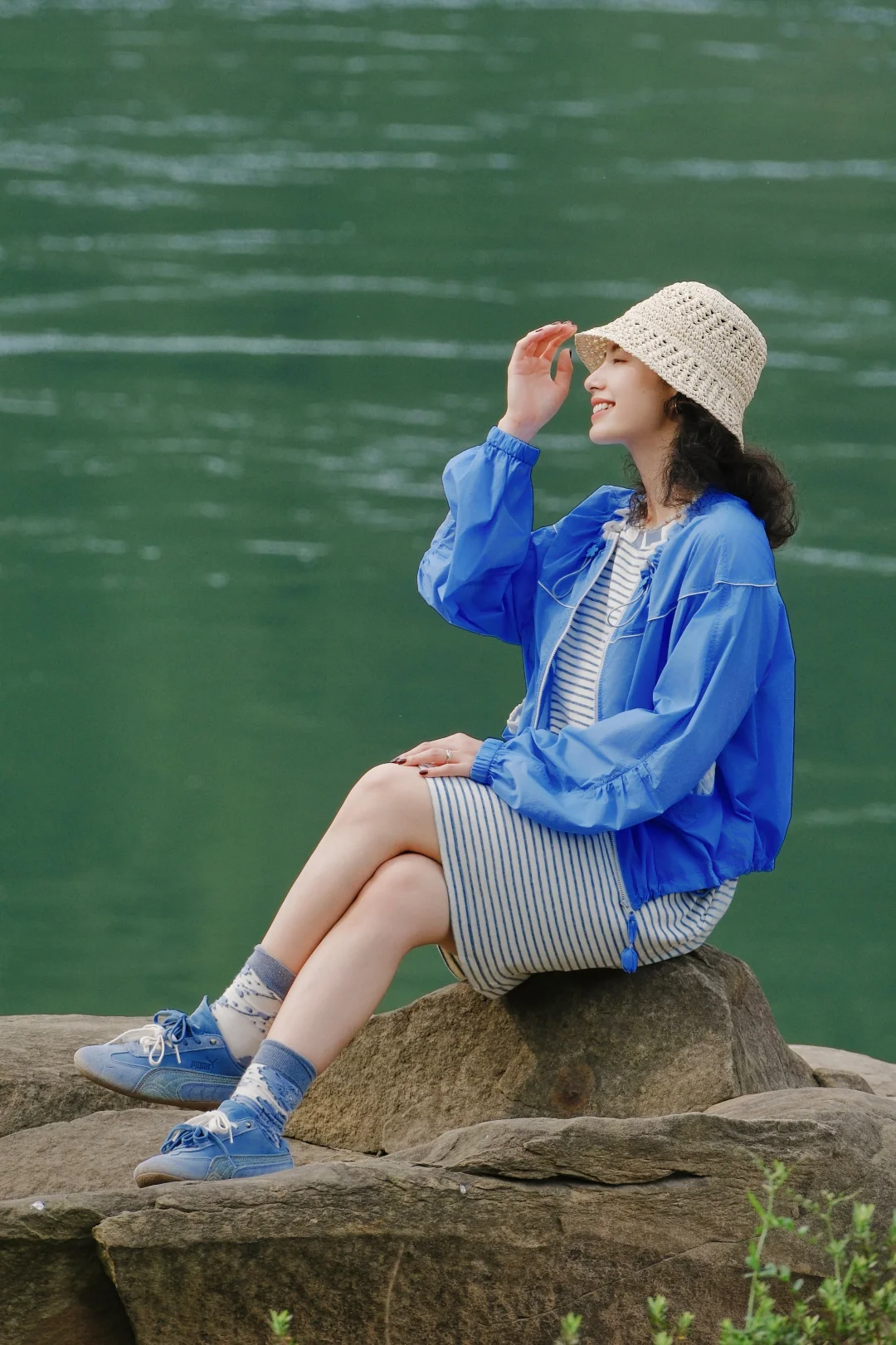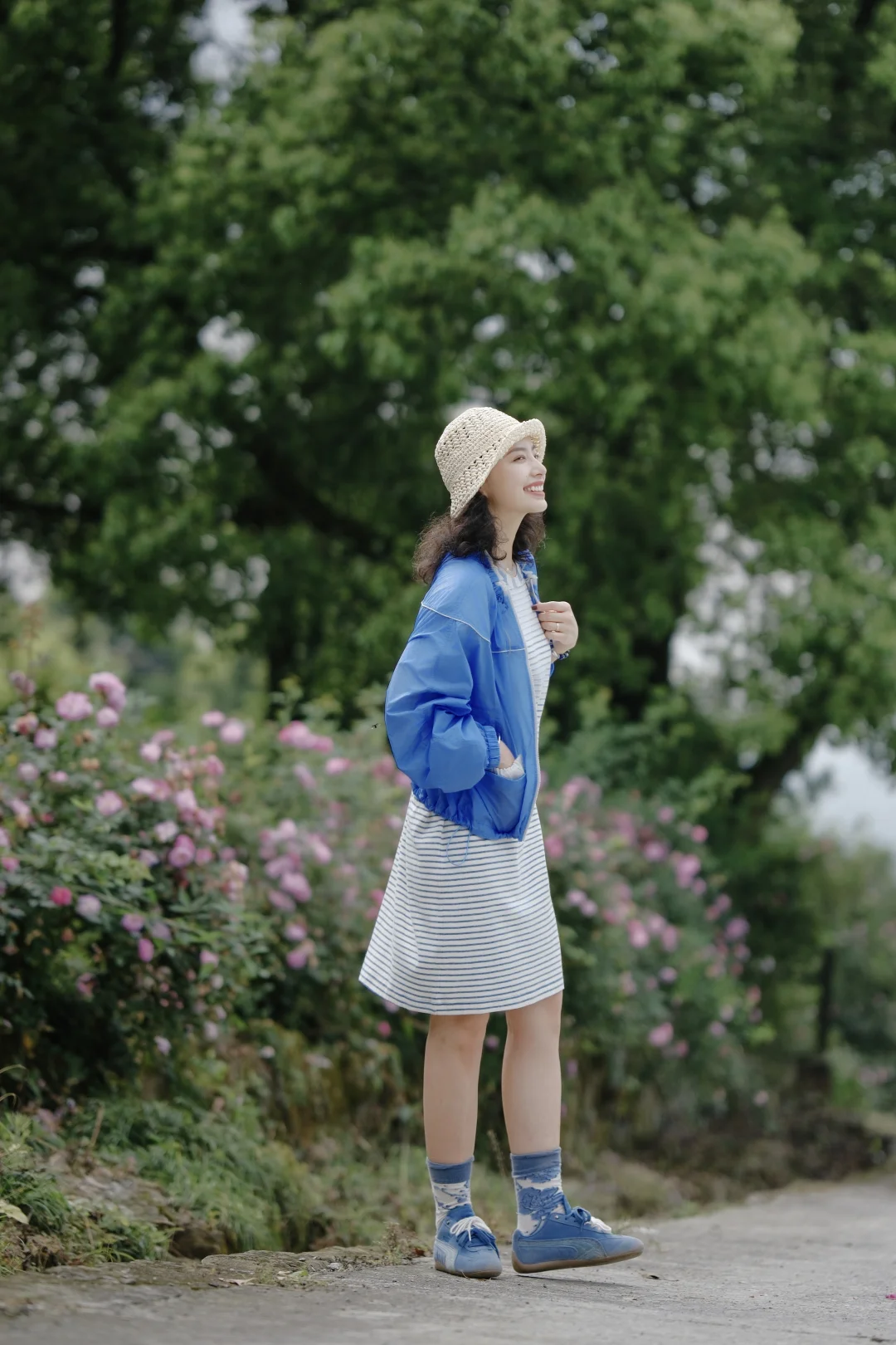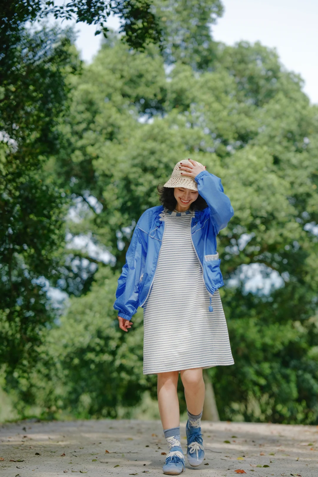 🔺奔跑互动:一手轻扶帽子,一手提裙摆或包包,从远处欢快跑向镜头,画面活力满满。