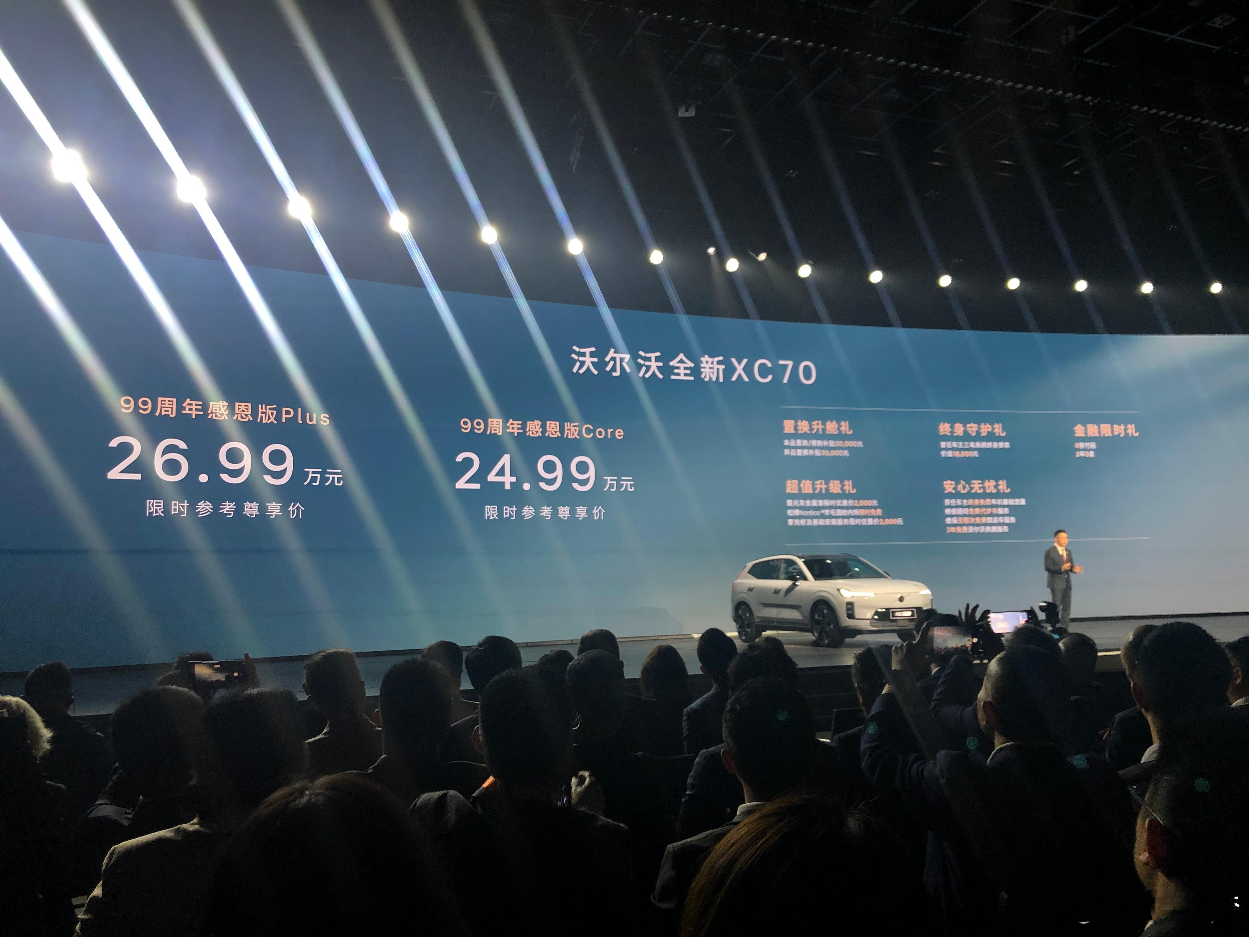 沃尔沃90双旗舰预售价来了轿车42.99万起,SUV 53.99万起而且今晚还带来了沃尔沃XC70新版型,99周年感恩版,24.99万起沃尔沃汽车99周年 25万买沃尔沃豪华混动