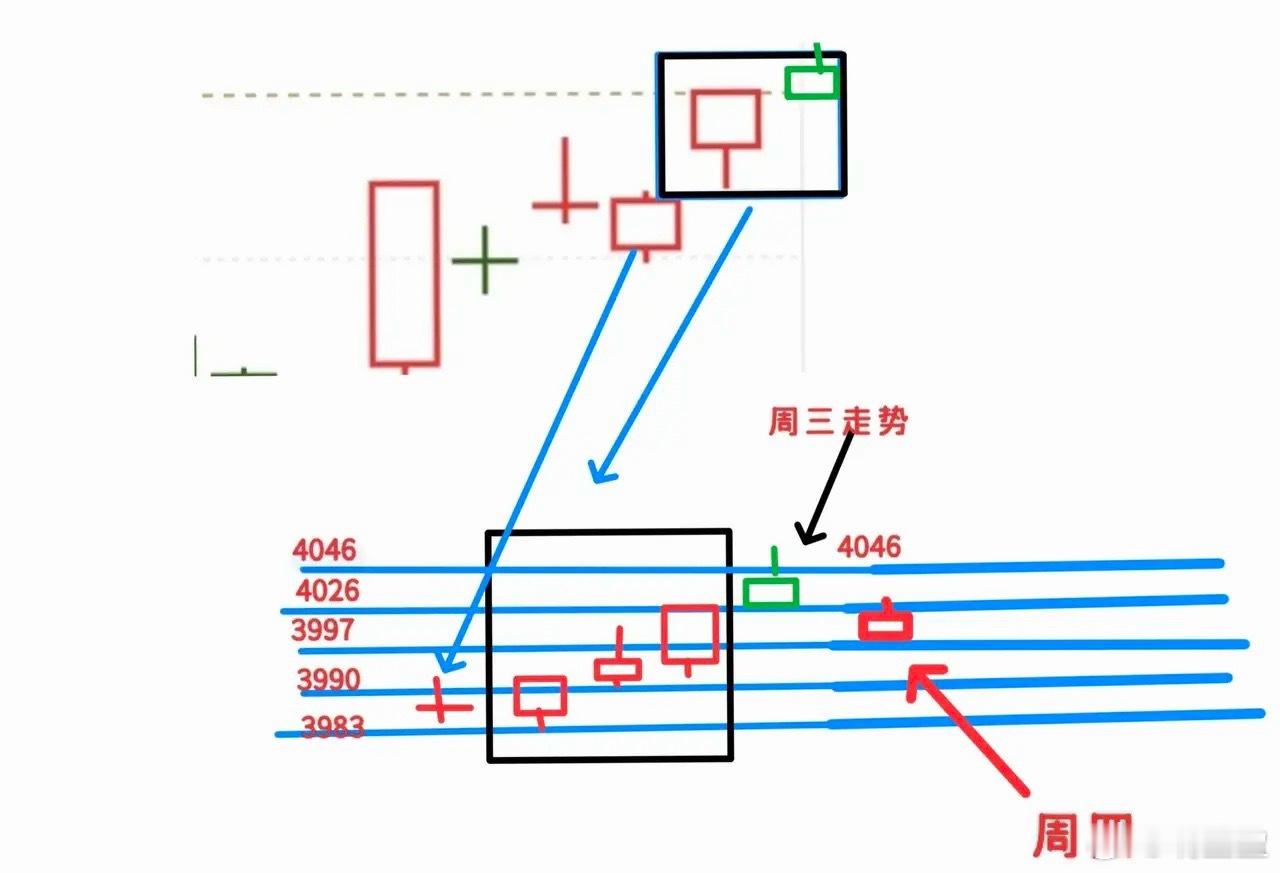 这一周我都是在通过拆解K线来推演盘面,昨天预判今天,今天预判明天。毕竟压力和支撑的关键区间比较窄,画图分析起来有些考验细节,大家理解我的逻辑就行。