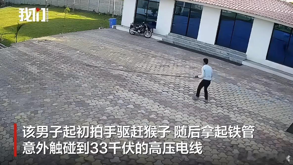 印度一男子举铁管赶猴碰高压线身亡驱赶猴子用那么长长长长的铁管,也是不嫌重啊。