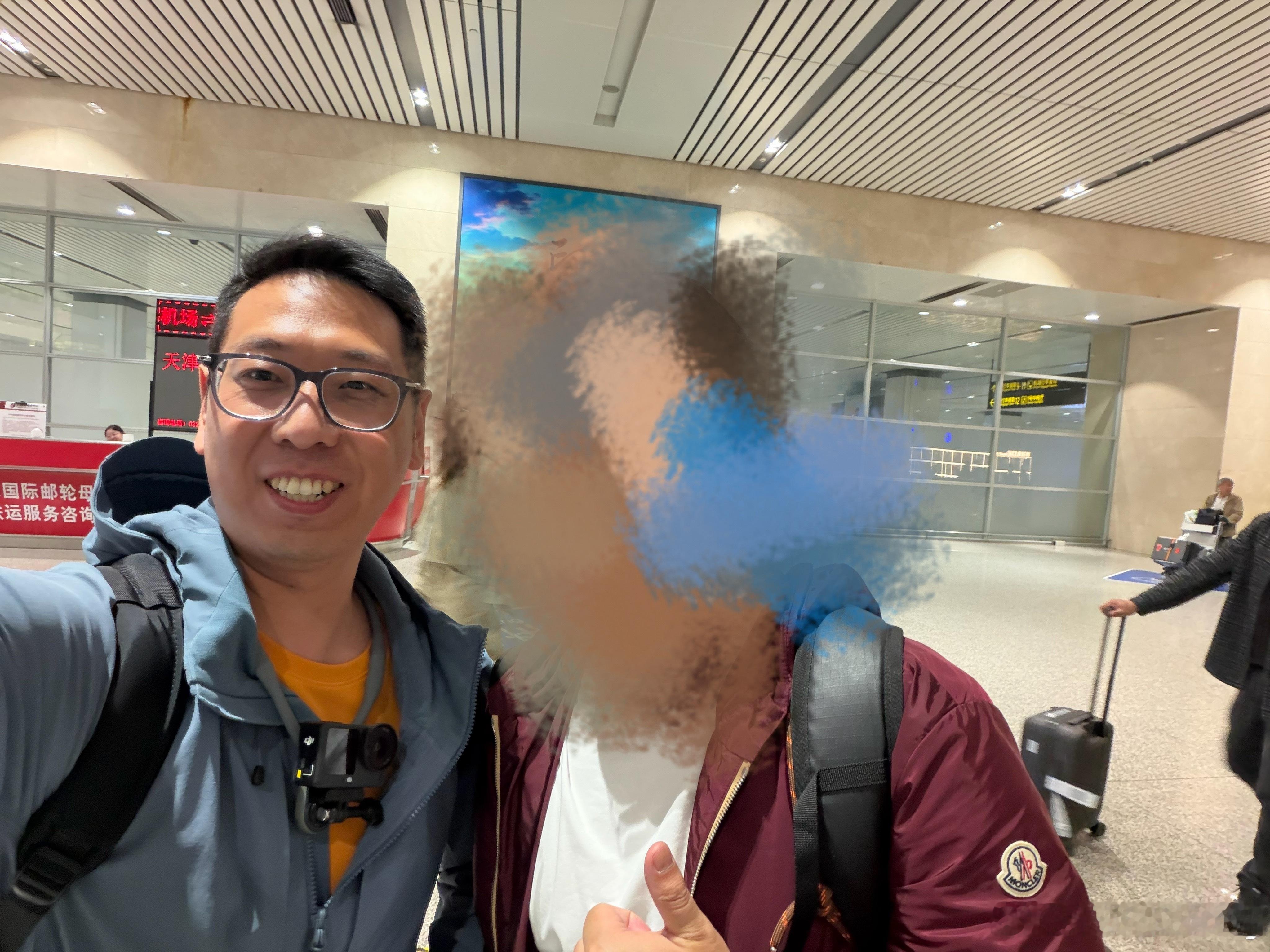 给粉丝打个码,保护老板隐私,能看出来非常帅! 天津·天津滨海国际机场