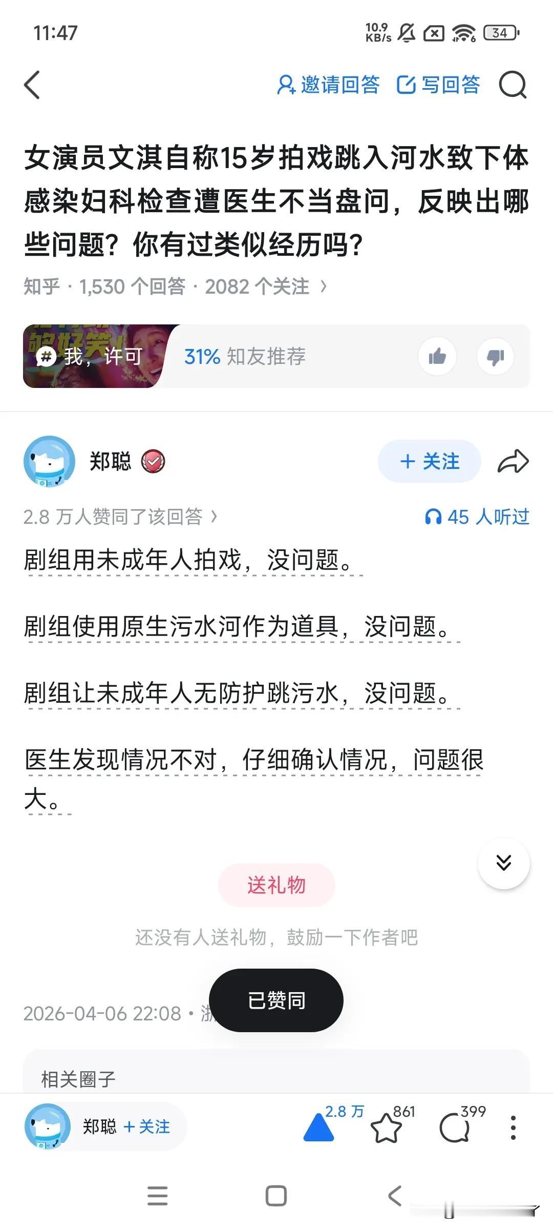 女演员文淇自称15岁拍戏跳入河水致下体感染妇科检查遭医生不当盘问,反映出哪些问题?你有过类似经历吗? 良心何在!!!